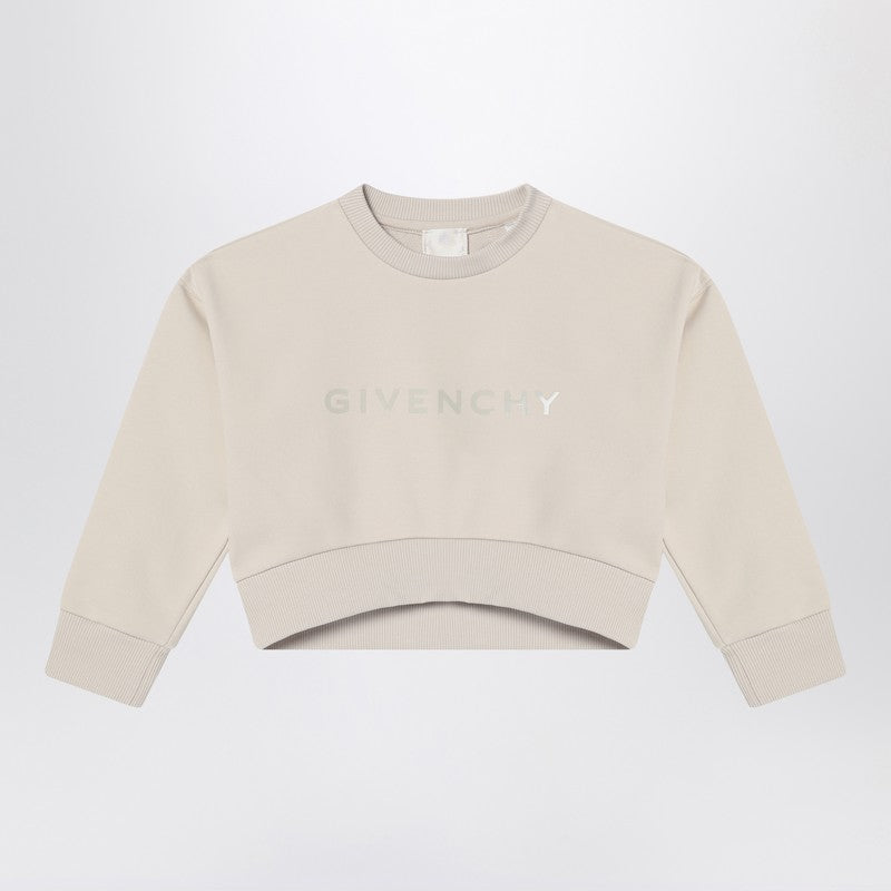 سويت شيرت بيج كريمي اللون بياقة دائرية من جيفنشي، يتميز بأكمام طويلة وحواف مضلعة وطبعة شعار متناغمة على الجهة الأمامية، وشعار 4G على الجهة الخلفية. مصنوع من مزيج قطني ناعم، هذا التصميم البسيط يضفي لمسة من الأناقة والرقي على أي مناسبة. إضافة خالدة إلى خزانة ملابسك، مثالية للطقس الدافئ.