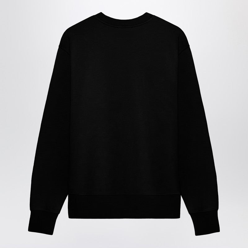 Black cotton sweatshirt with a crew neck and long sleeves, featuring a contrasting logo print on the front. Ribbed details at the collar, cuffs, and hem add a touch of texture. Made in Italy from high-quality cotton, this piece is perfect for effortless autumn and winter layers.