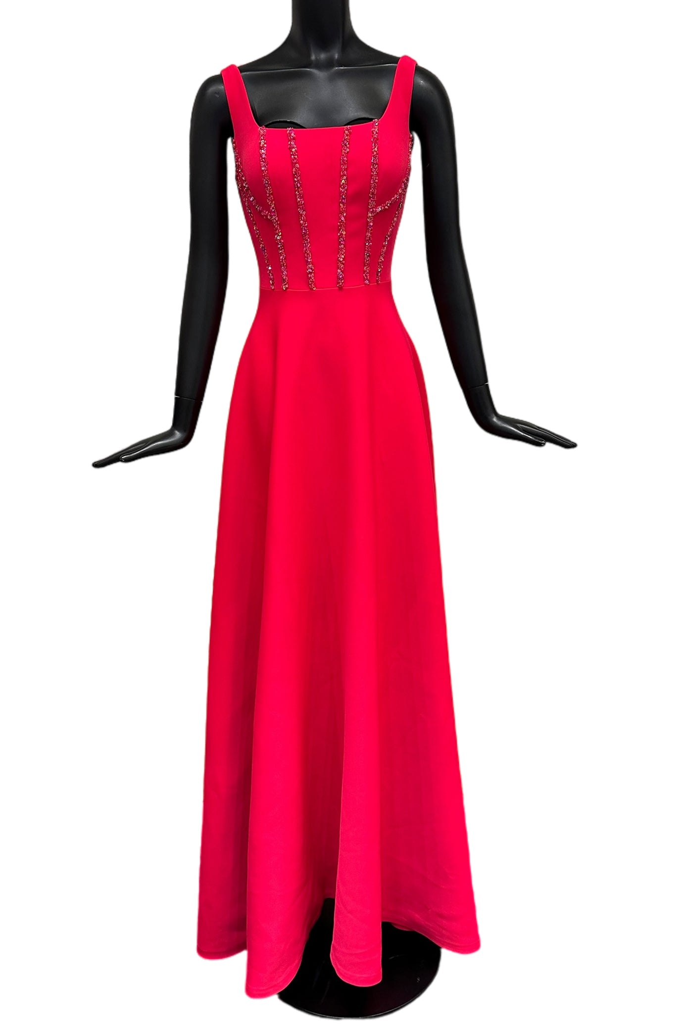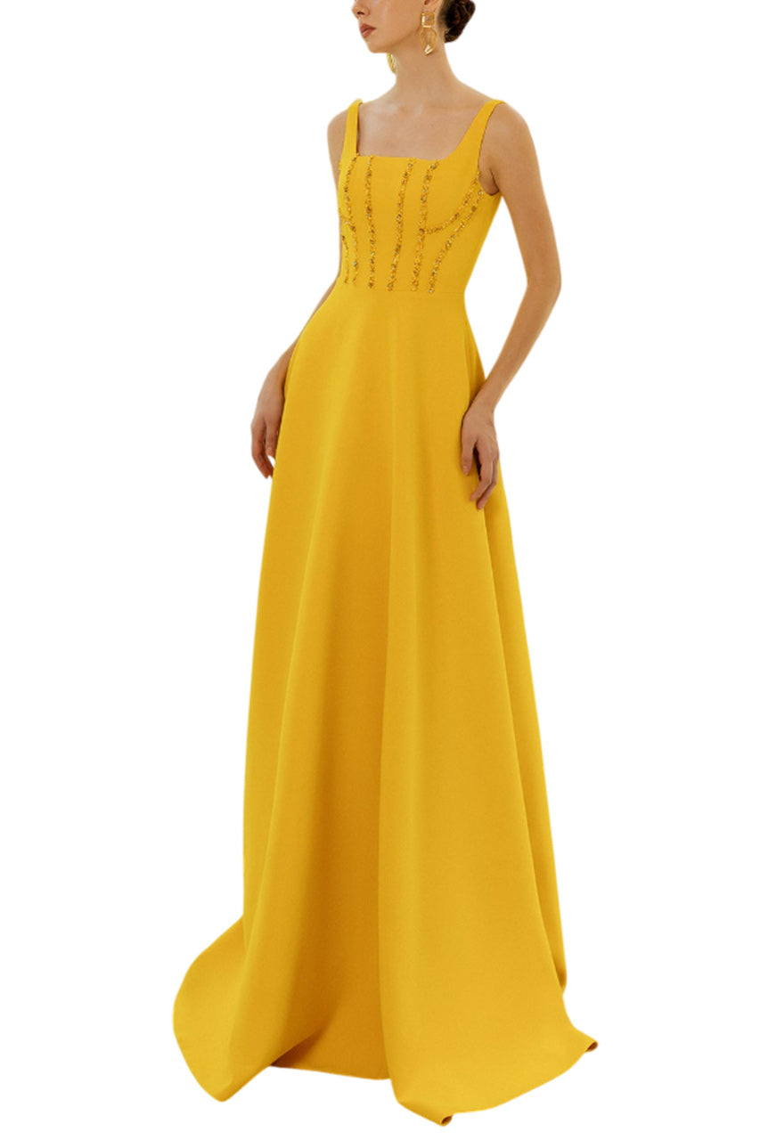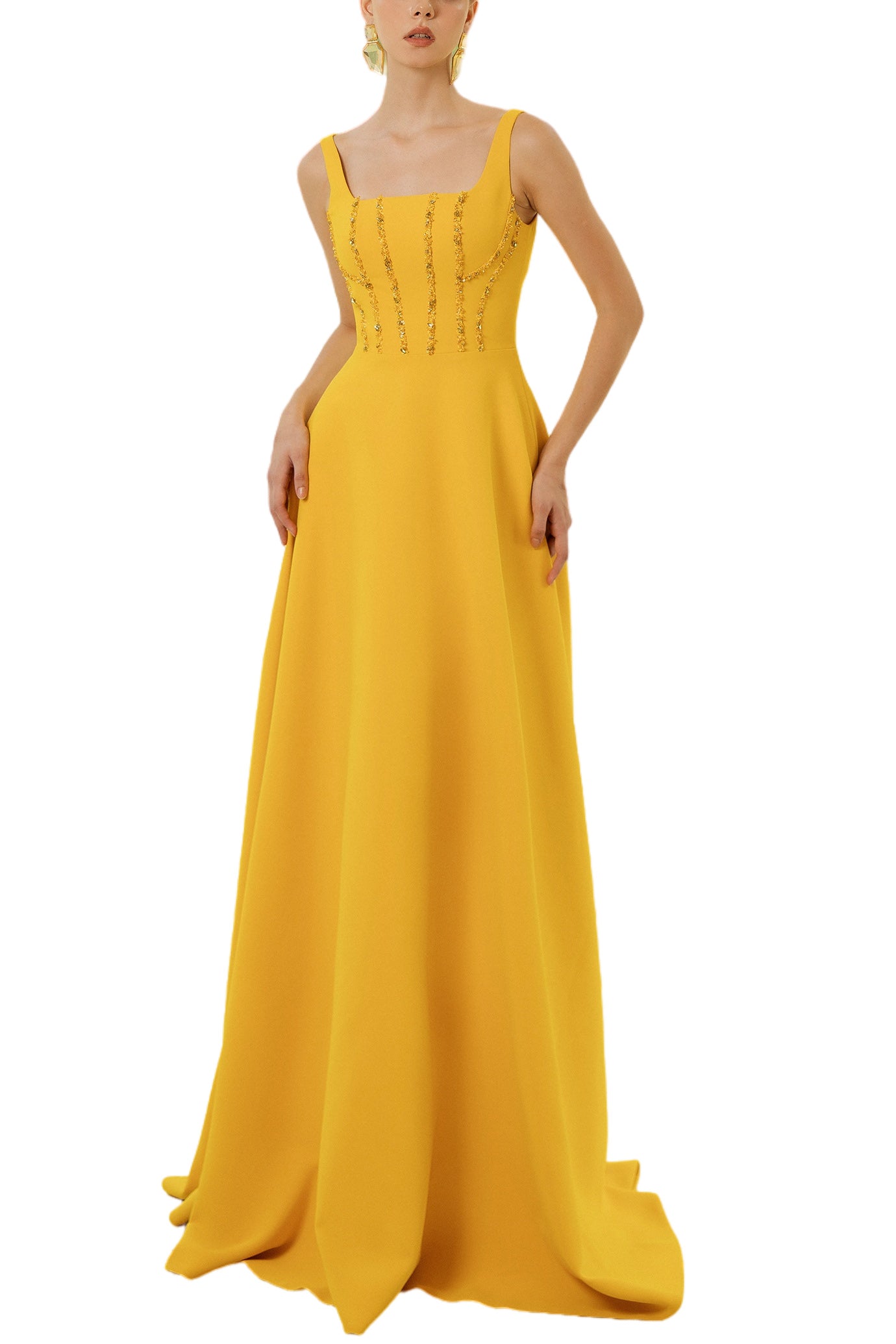 The Sophie Crepe Dress by 21SIX features a sophisticated sleeveless design with an elegant square neckline. Crafted from quality crepe fabric, this A-line gown creates a flattering silhouette that drapes beautifully from the fitted bodice. Perfect for formal occasions where refined style and comfort are essential.