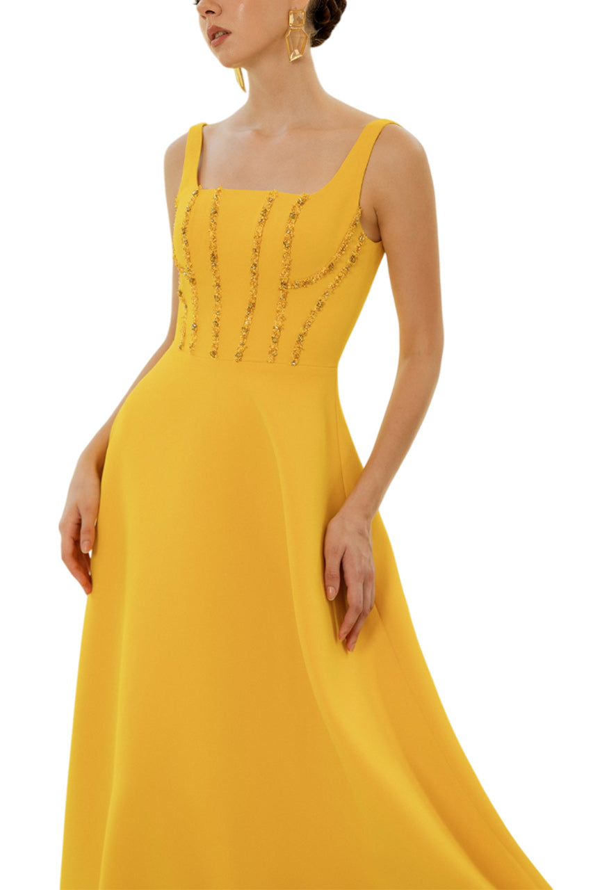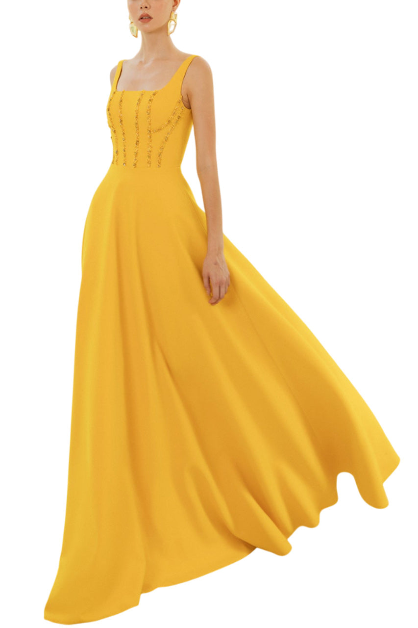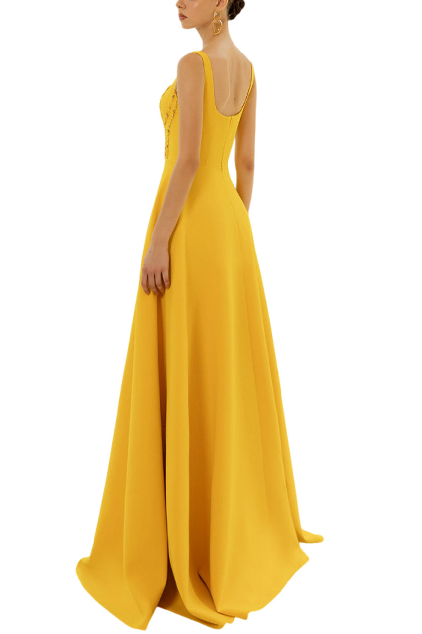 The Sophie Crepe Dress by 21SIX features a sophisticated sleeveless design with an elegant square neckline. Crafted from quality crepe fabric, this A-line gown creates a flattering silhouette that drapes beautifully from the fitted bodice. Perfect for formal occasions where refined style and comfort are essential.