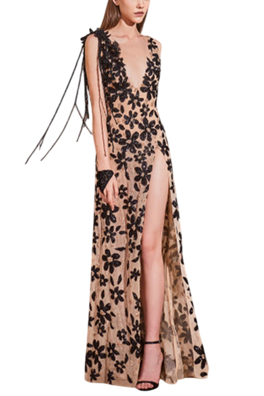 BEADED FLORAL GOWN