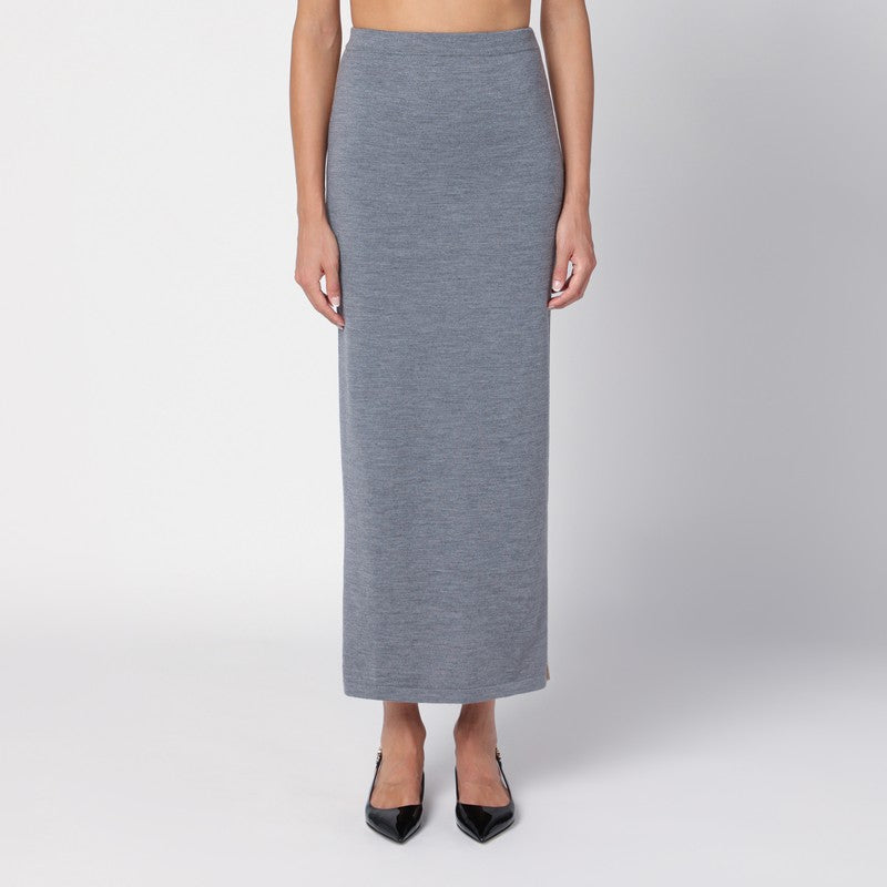 Elevate your wardrobe with Moschino's beige and grey virgin wool long skirt, featuring an elasticated waist for effortless comfort. Crafted from high-quality Italian wool, this chic design exudes sophistication and style. Perfect for the modern woman, this versatile piece can be dressed up or down for any occasion. Made in Italy, this skirt embodies the perfect blend of fashion and function.