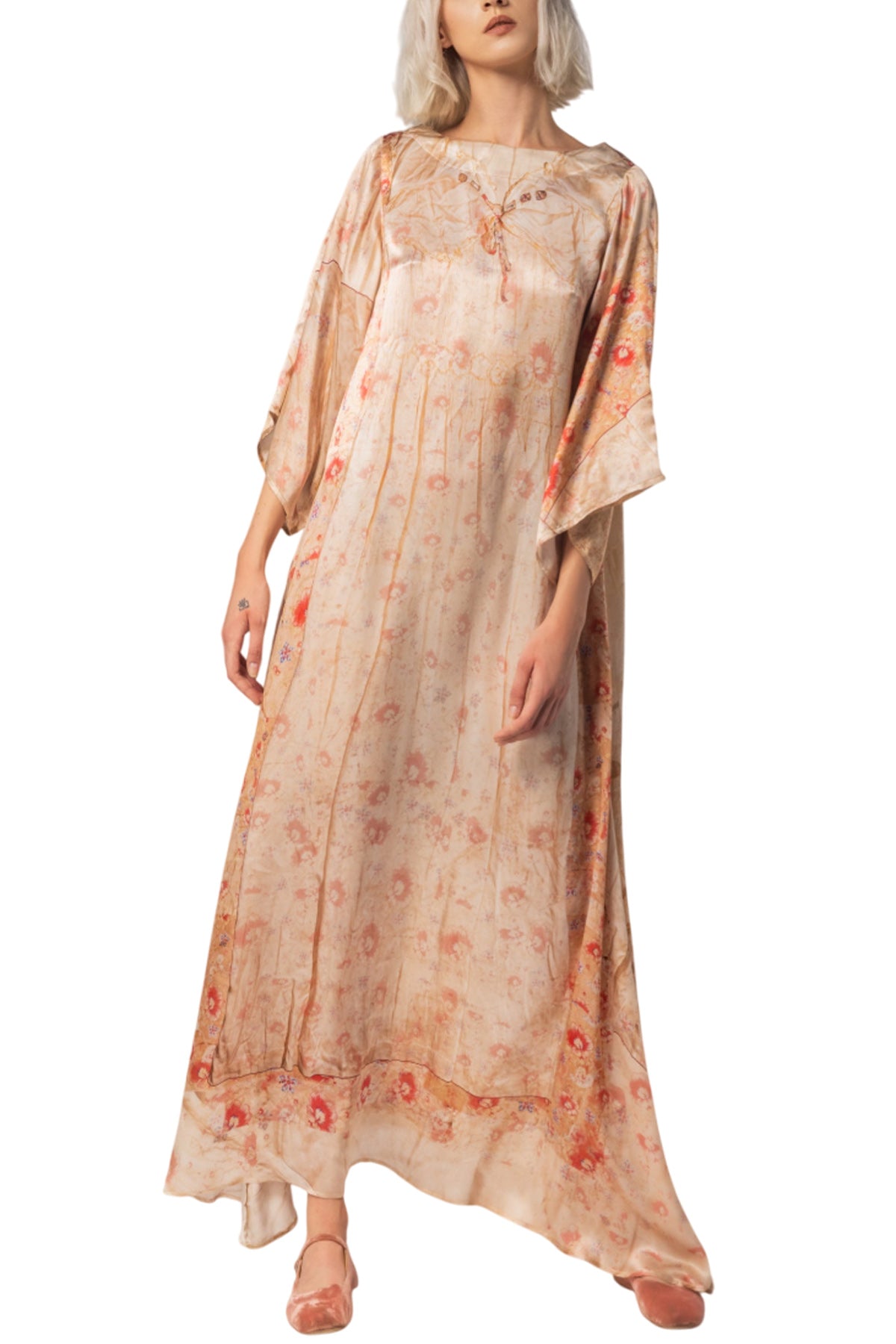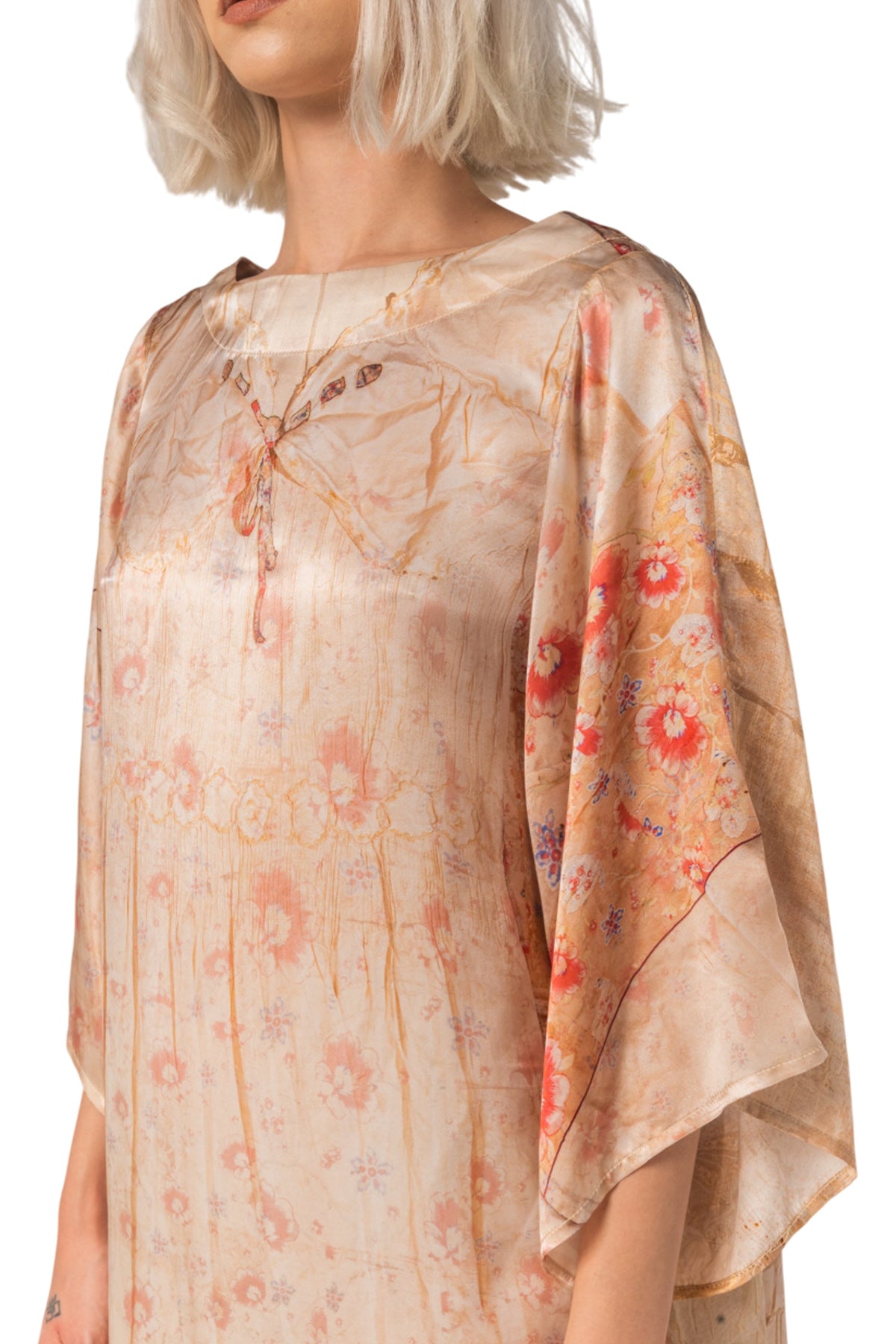 Inspired by a vintage nightgown of Huda’s mother, the Ayda slip dress is an ephemeral creation reinvigorated in Russian chintz. Reminiscent of a faded portrait, and the fragility of the physical, Ayda’s original print was projected onto a BOKJA textile and translated into timeless garments for yet another generation to adore.