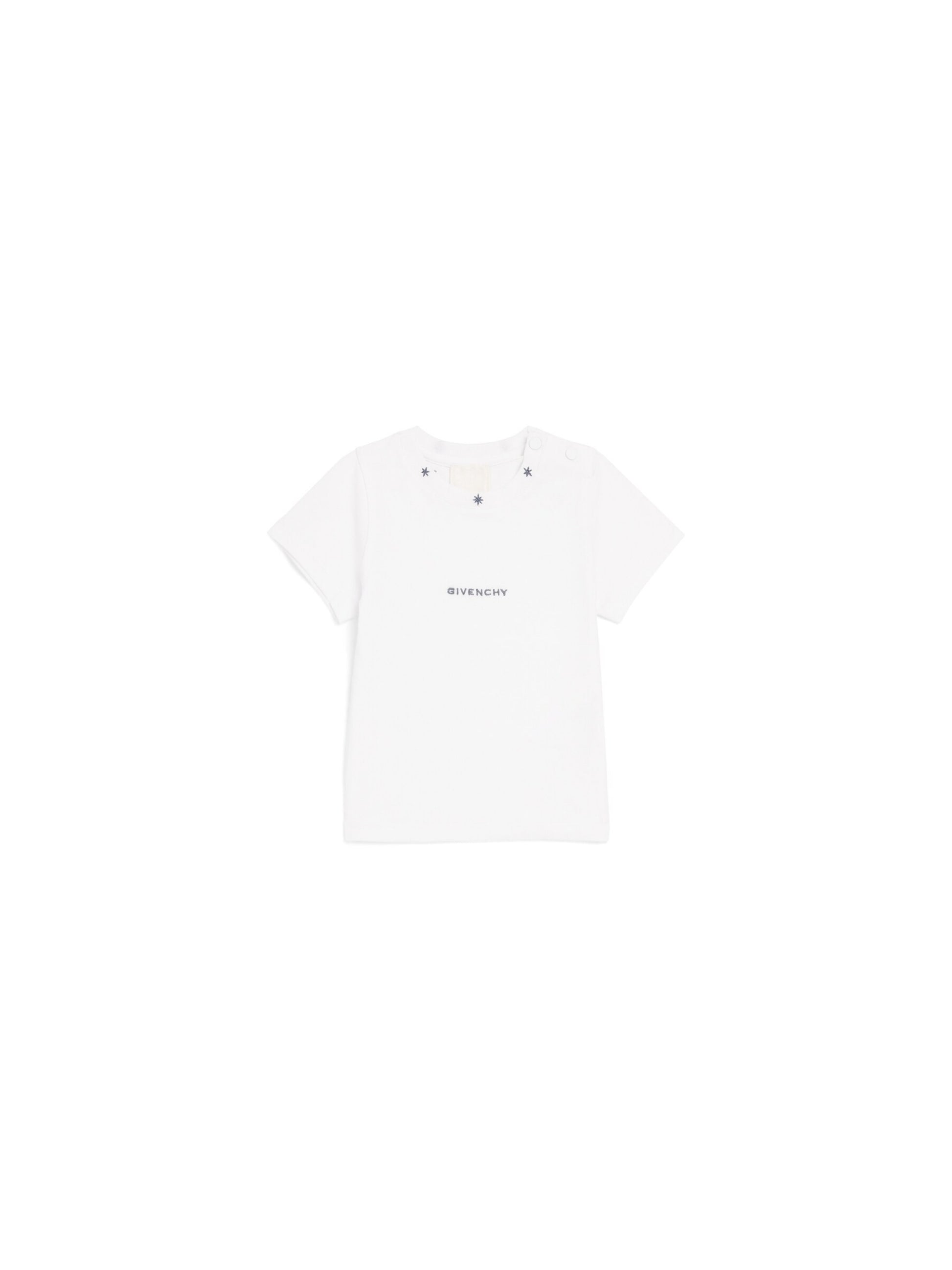 Givenchy Kids T-Shirt. Soft cotton construction meets bold style with our iconic logo prominently printed across the chest. A straightforward yet unmistakable statement piece for young fashion enthusiasts.