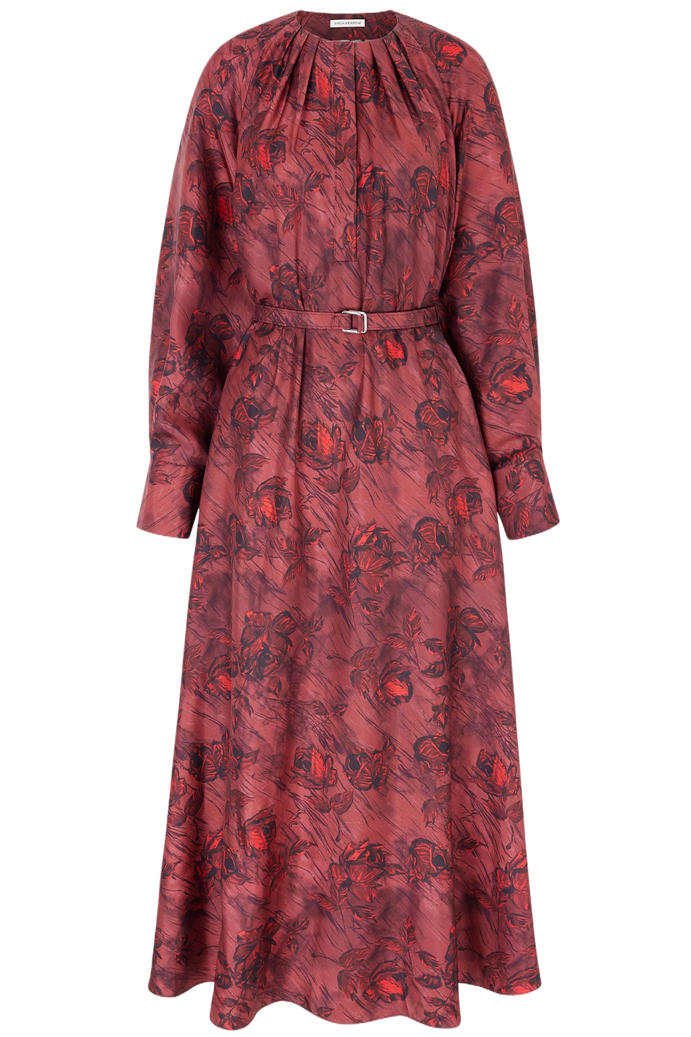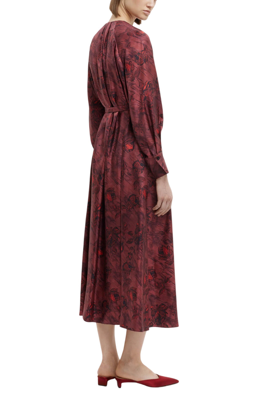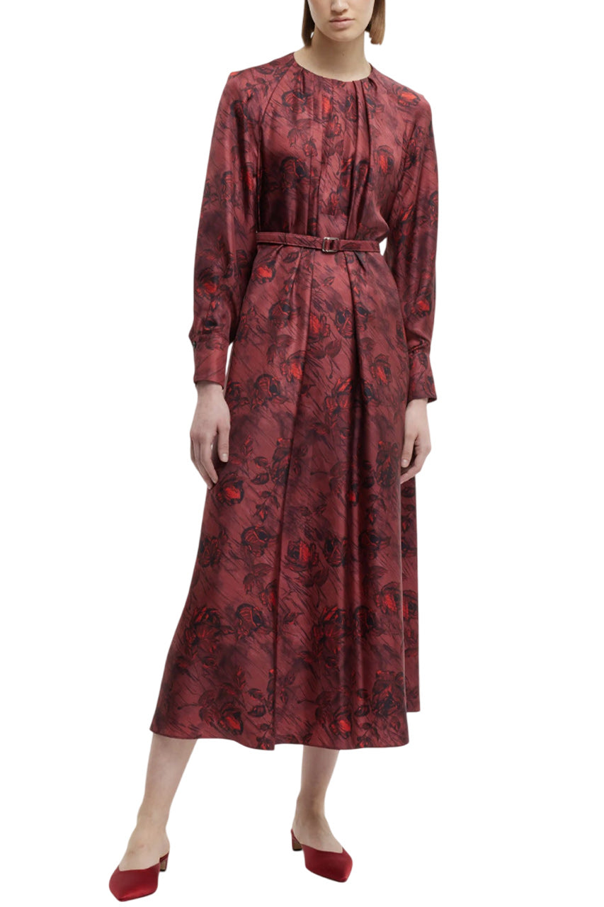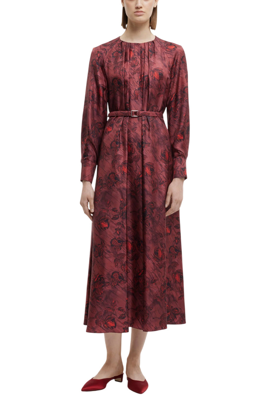 SKU: ALB-Bahiti Dress In Red Roses On Marble Print Silk Twill-UK18