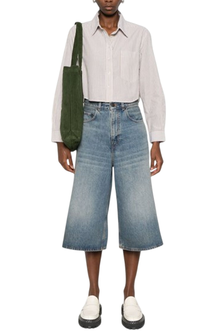 Our high-waisted denim culottes prioritize comfort with a sleek, five-pocket design that keeps essentials within reach. A concealed zipper and button closure provide a secure, streamlined fit. Versatile and effortless, these culottes are designed to complement your modern style.
