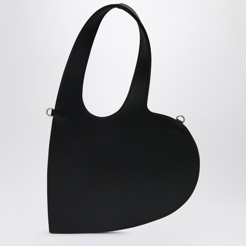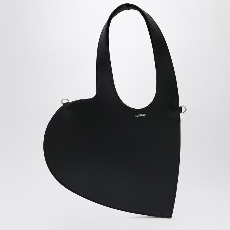 Elevate your everyday style with the Coperni mini bag. Crafted from supple black leather, this sleek design boasts an adjustable shoulder strap, removable for versatile wear, and two sturdy top handles. Accentuated by contrasting lettering and a heart-adorned front, this compact bag features a single spacious compartment for your essentials. Perfect for city excursions, this miniature marvel is both stylish and functional.