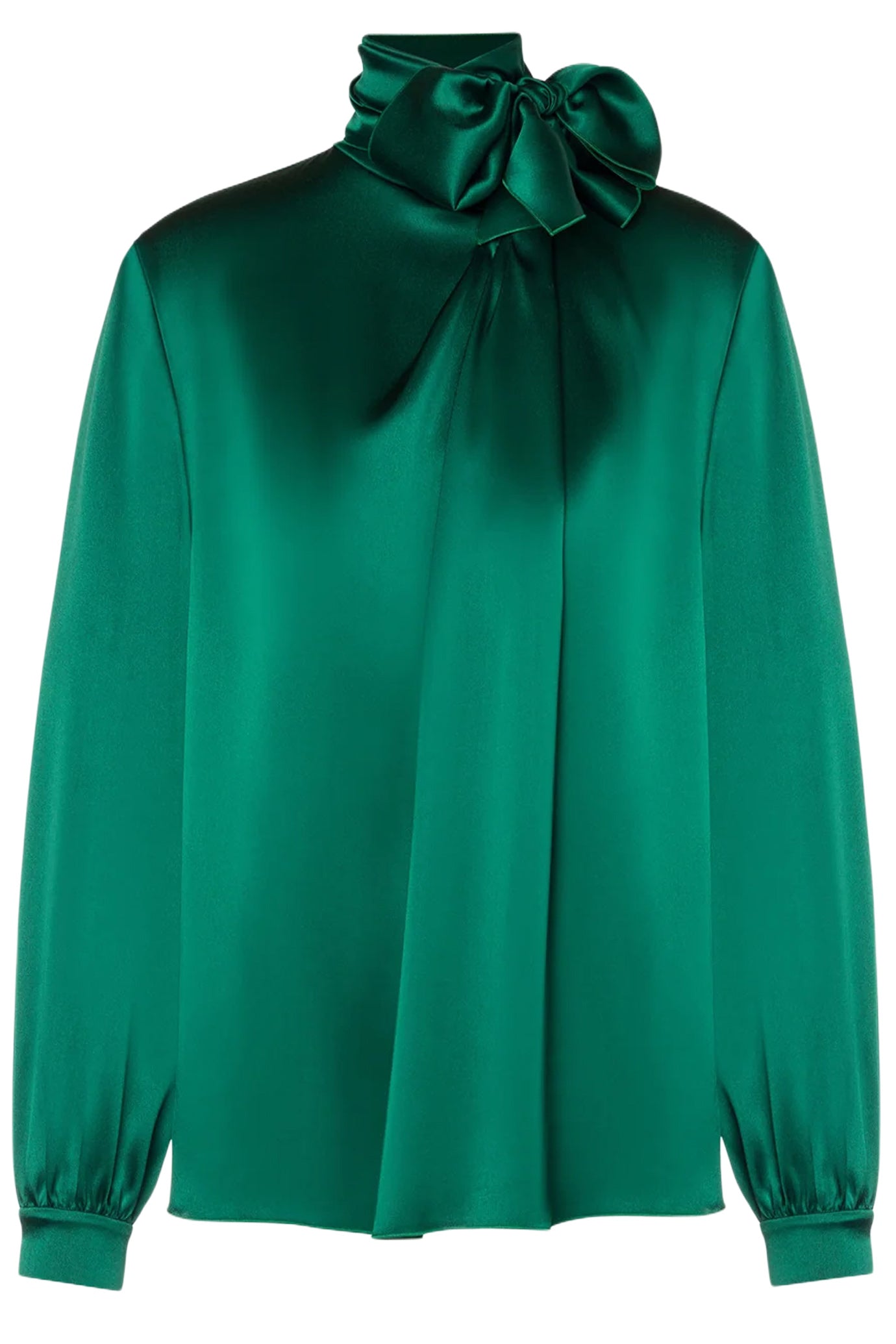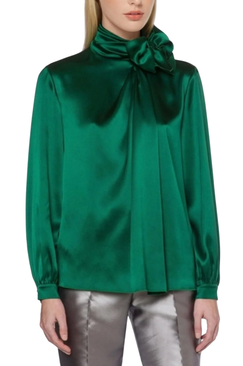 Expertly crafted from smooth satin fabric, this green polo shirt features a unique lavalliere collar for a sophisticated touch. Perfectly combining comfort and style, the long sleeves add versatility to your wardrobe. Elevate your look with this must-have piece.