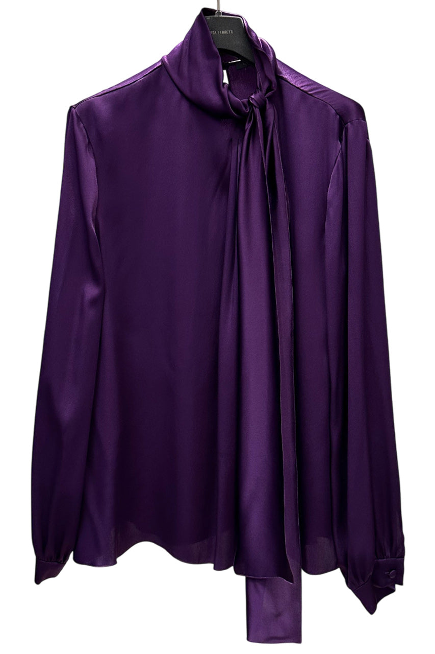 SKU: ALB-Satin Polo Shirt With Lavalliere Collar-IT46