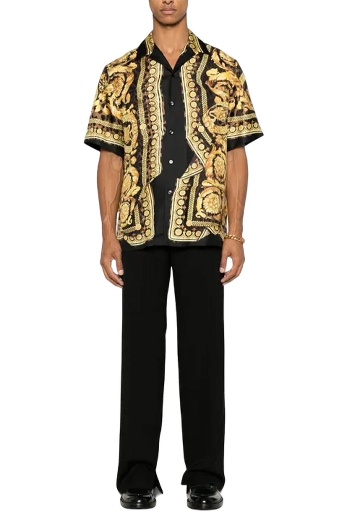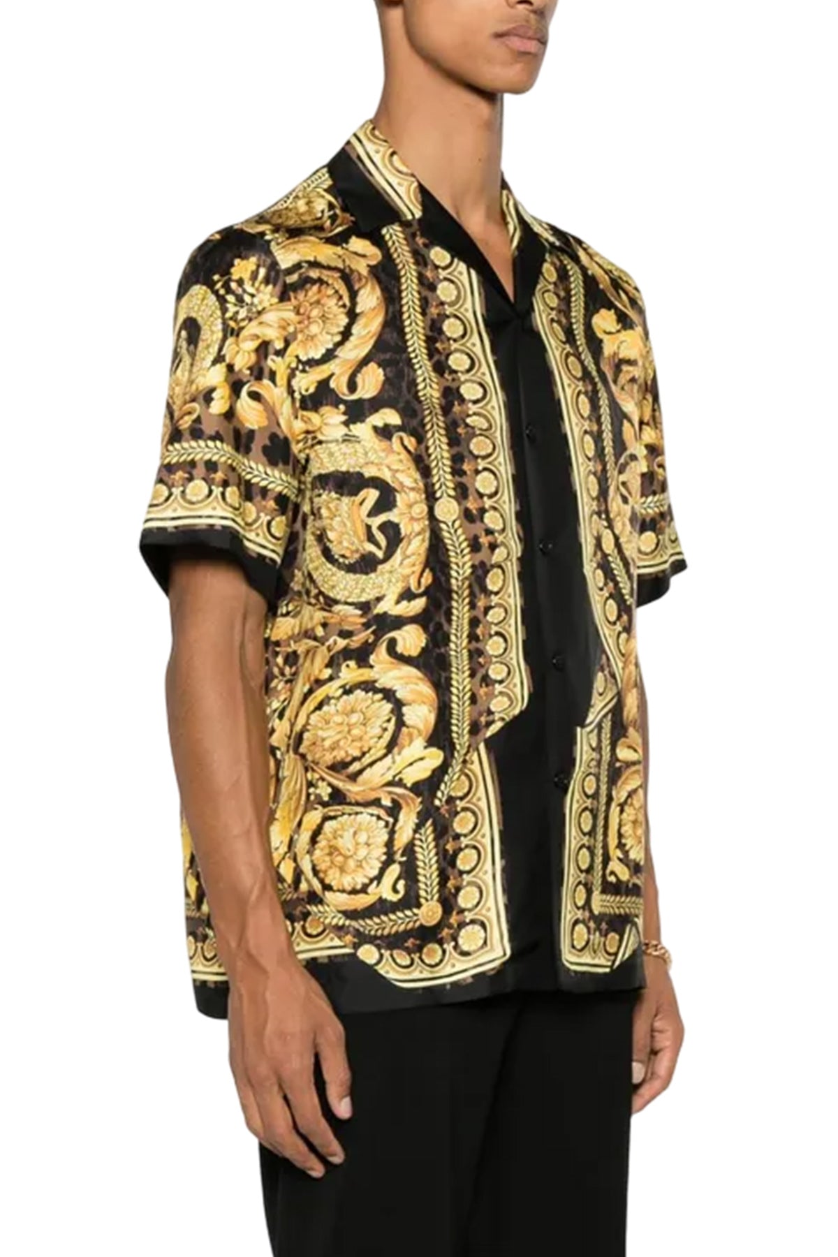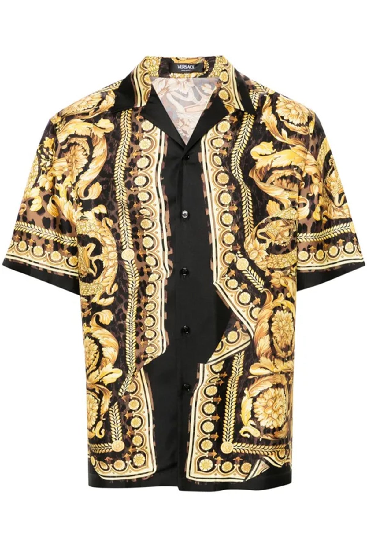 Our silk twill shirt features a striking Wild Barocco Illusion print, blending the Barocco pattern with a leopard motif and subtle trompe-l'œil crease effect. The notched collar and front button fastening add a touch of sophistication. Crafted from 100% silk, this luxurious shirt combines distinctive style with exceptional comfort.