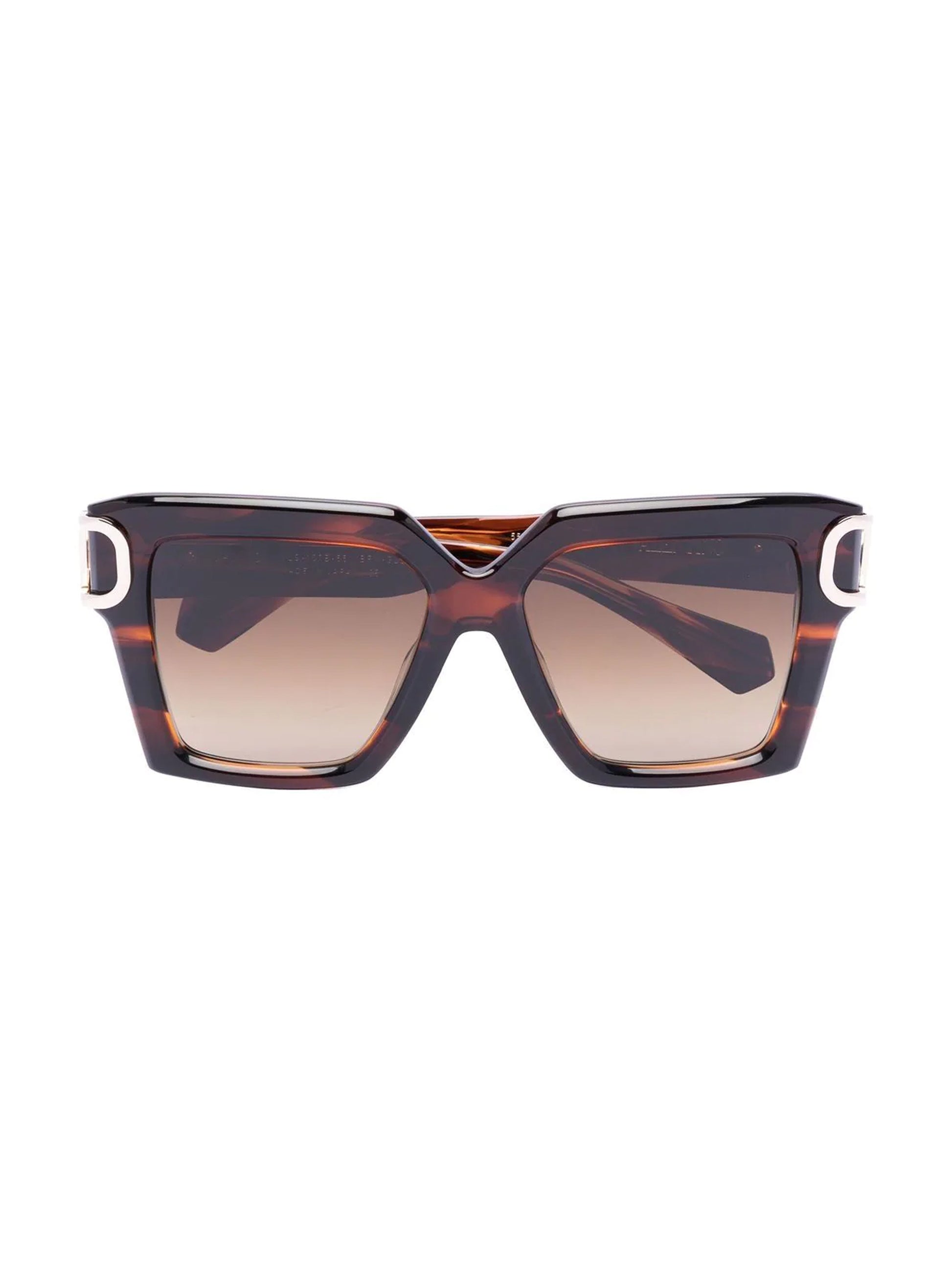 Embody iconic style with Valentino's oversized frames, featuring a signature VLogo motif. Crafted from structured Japanese acetate, these sunglasses boast a striking tortoiseshell effect and UV-protective brown lenses. Details include straight arms and curved tips, adding a touch of sophistication to this timeless design. Protective case included. Made from 100% acetate.