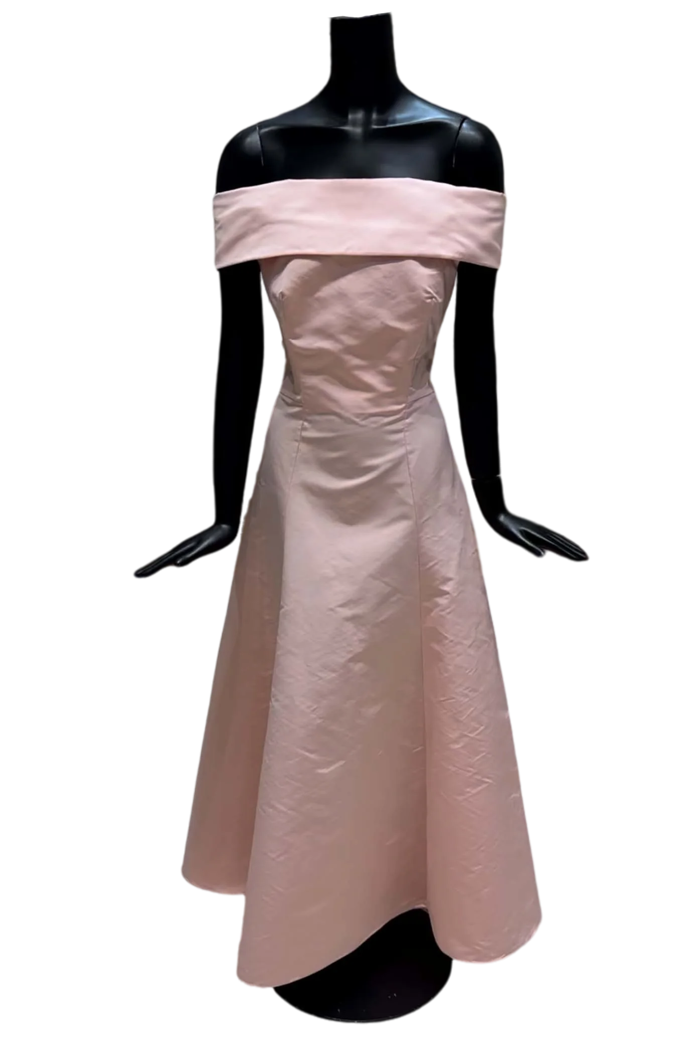 Expertly crafted with a flattering off-shoulder design, the Kristiana Midi Dress is the perfect choice for any cocktail event. Its full circle skirt and band detail provide a timeless and sophisticated look, making you stand out in the crowd. Elevate your style with this stunning dress.