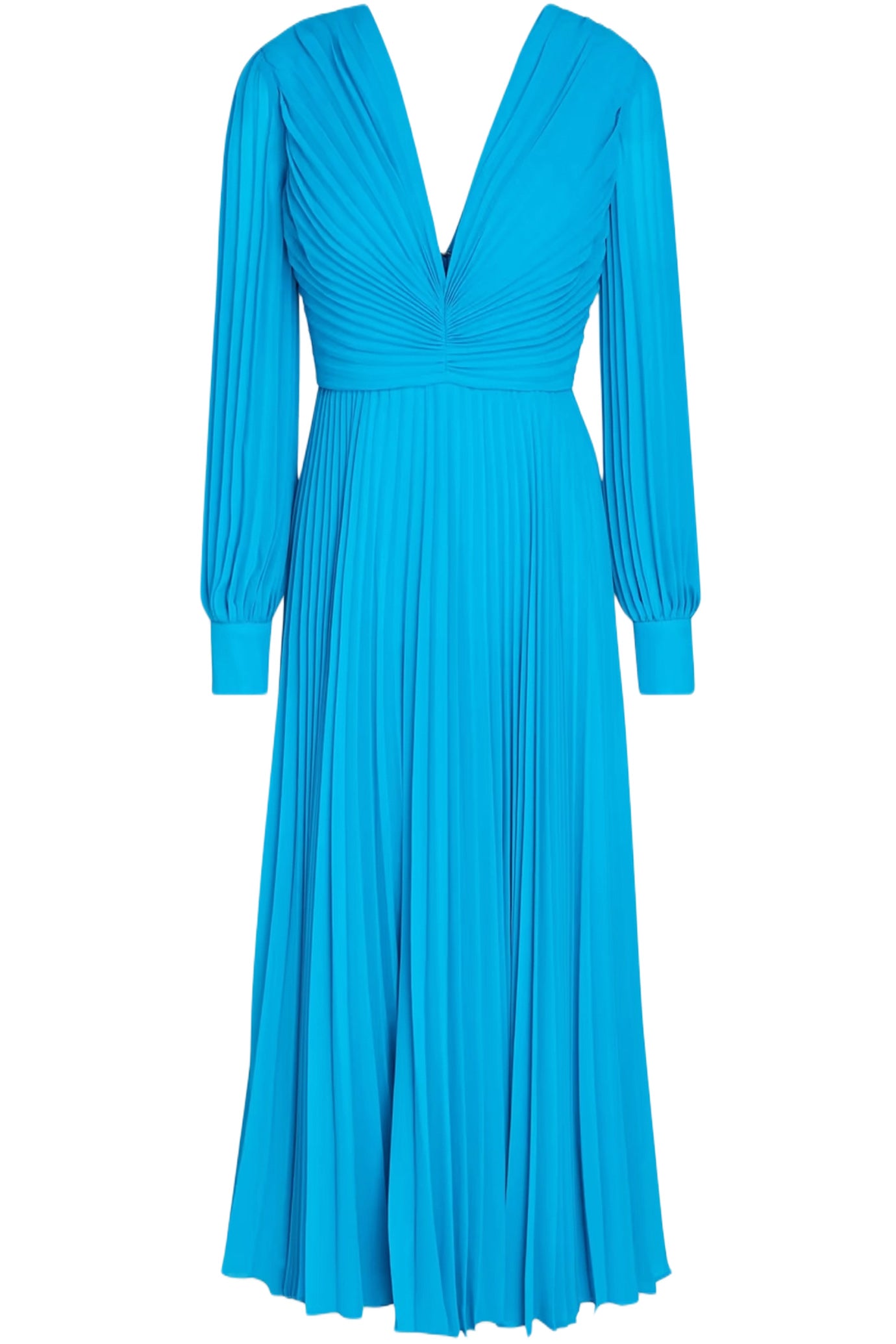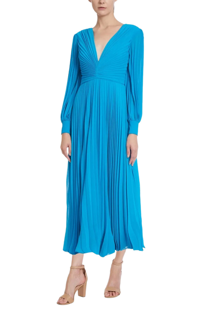 This timeless dress features cuffed balloon sleeves, a flattering V-neckline, and flowy skirt.
