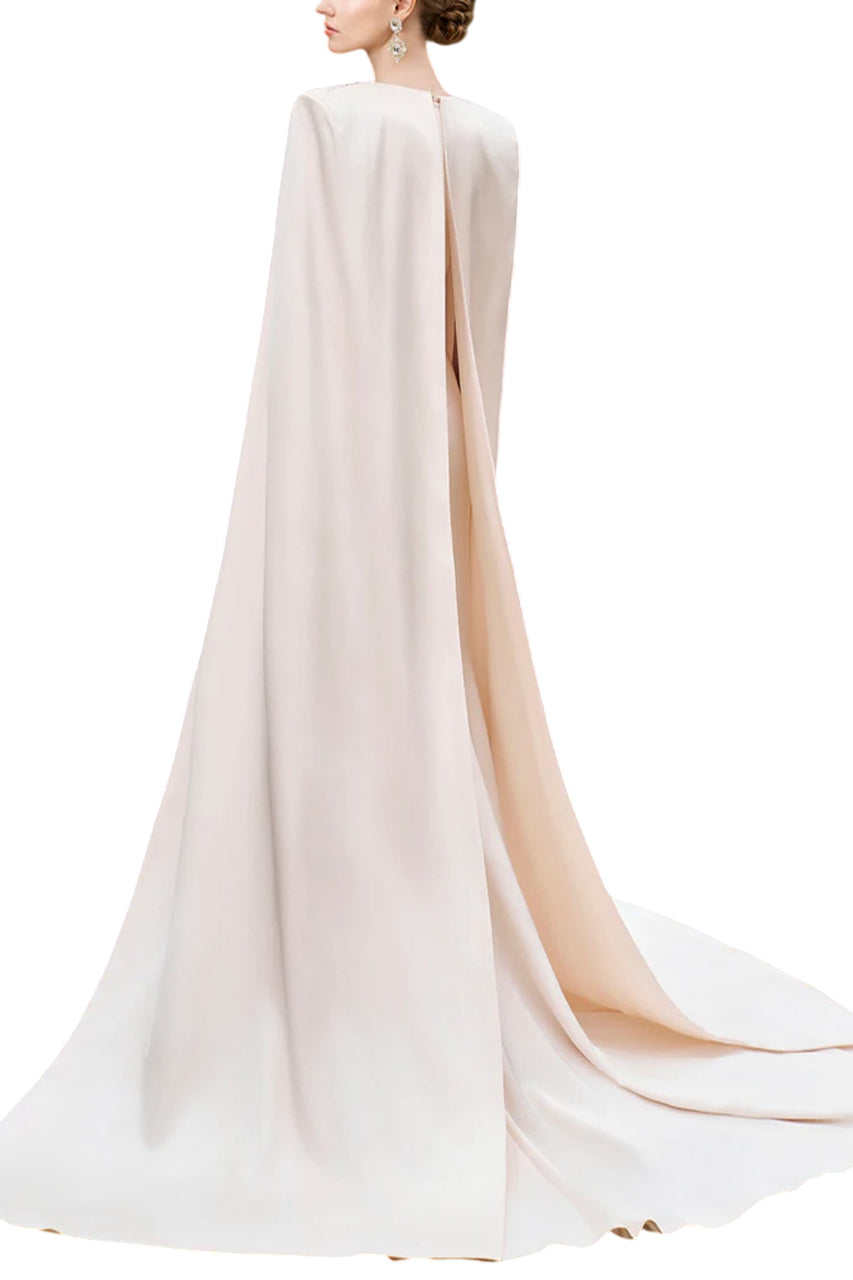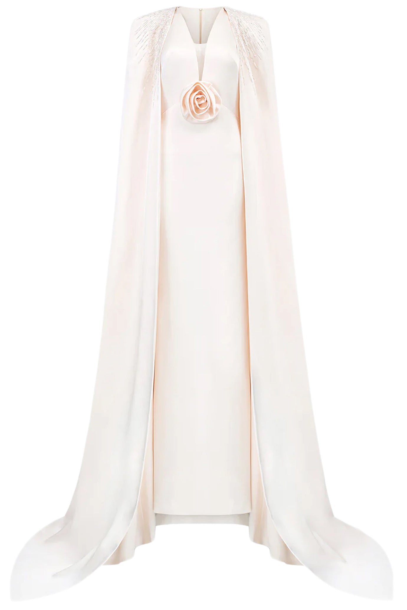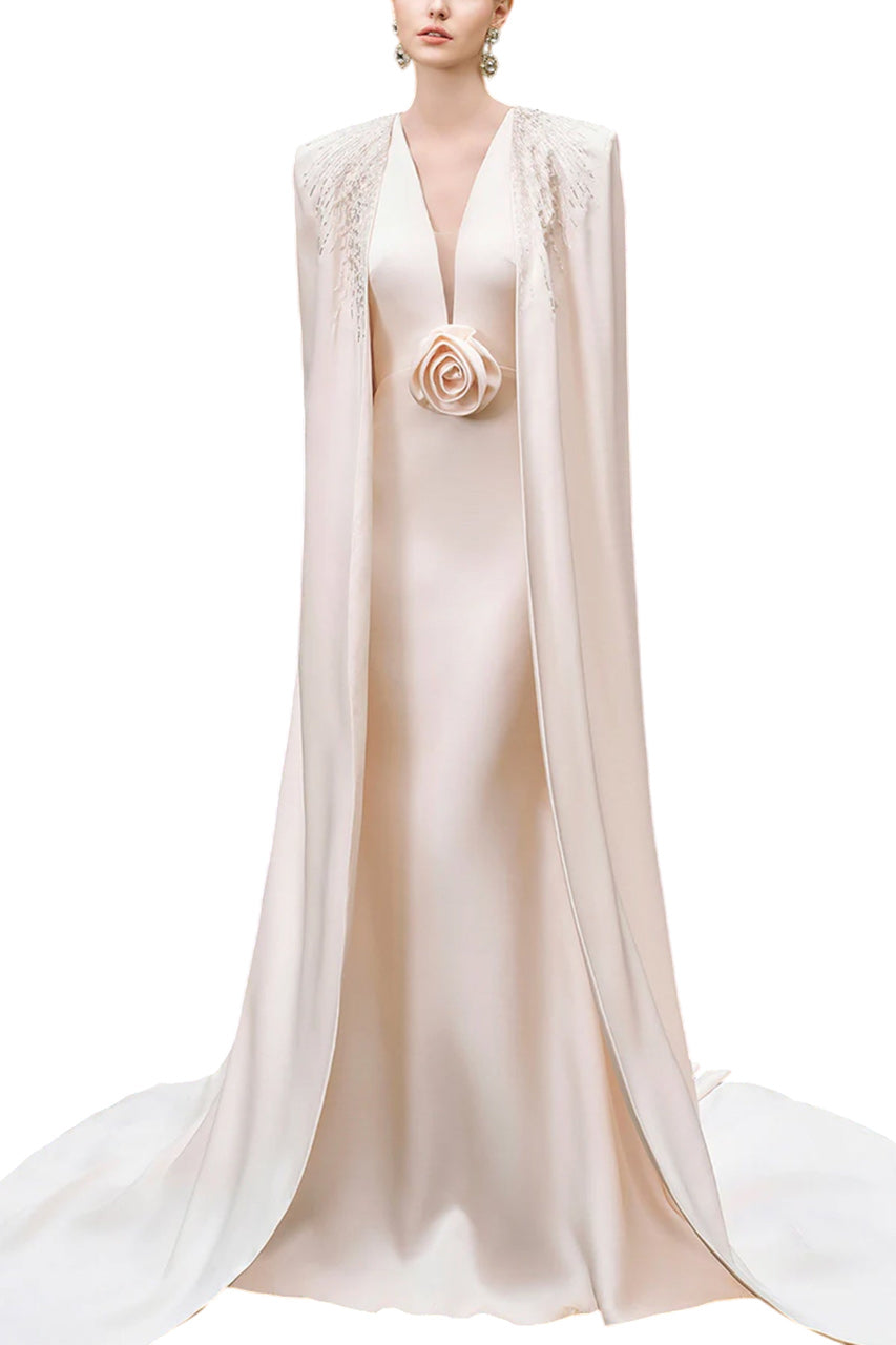 V-NECKLINE SLEEVELESS GOWN WITH LONG CAPE