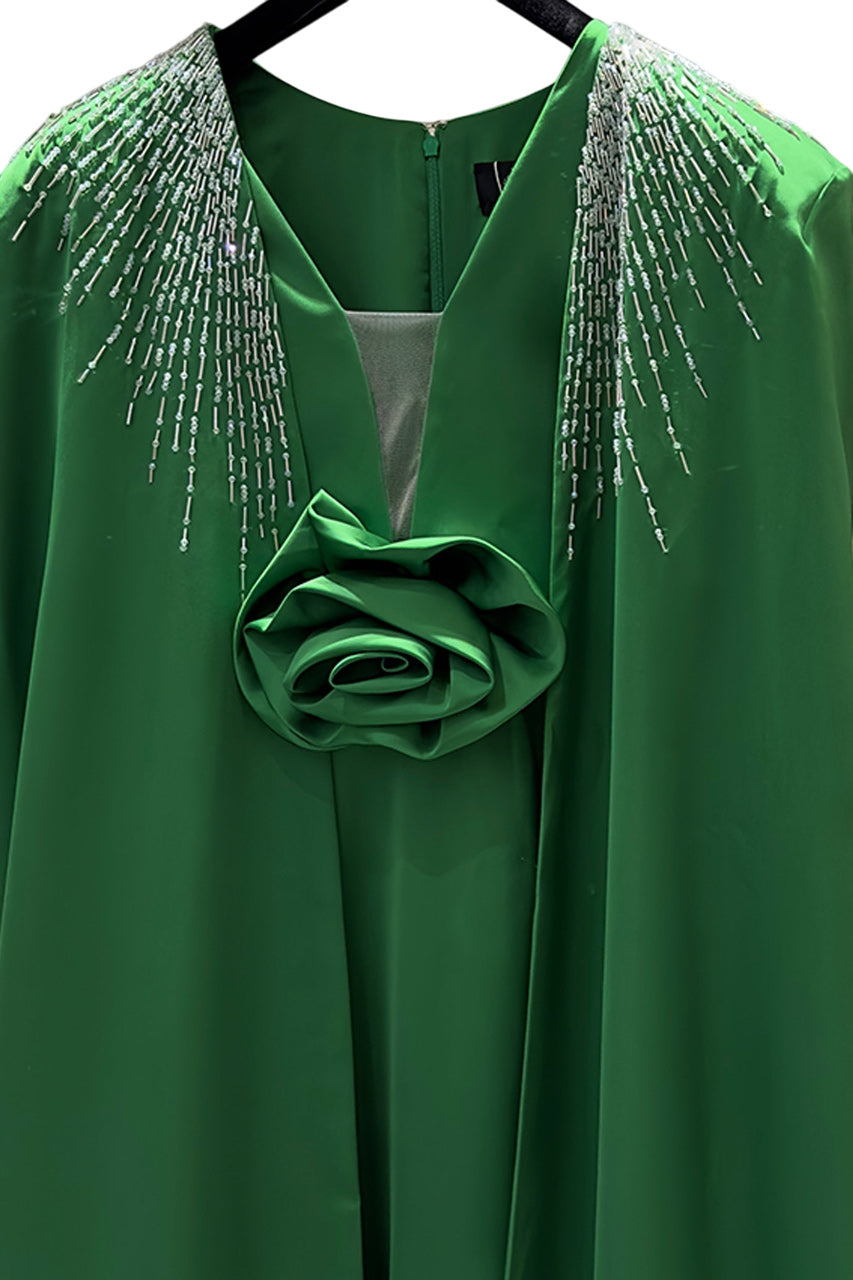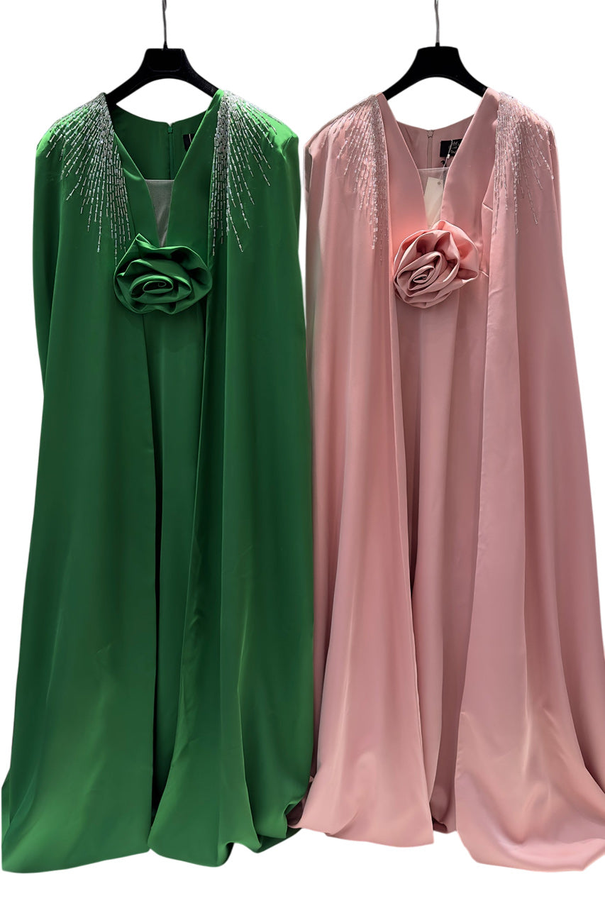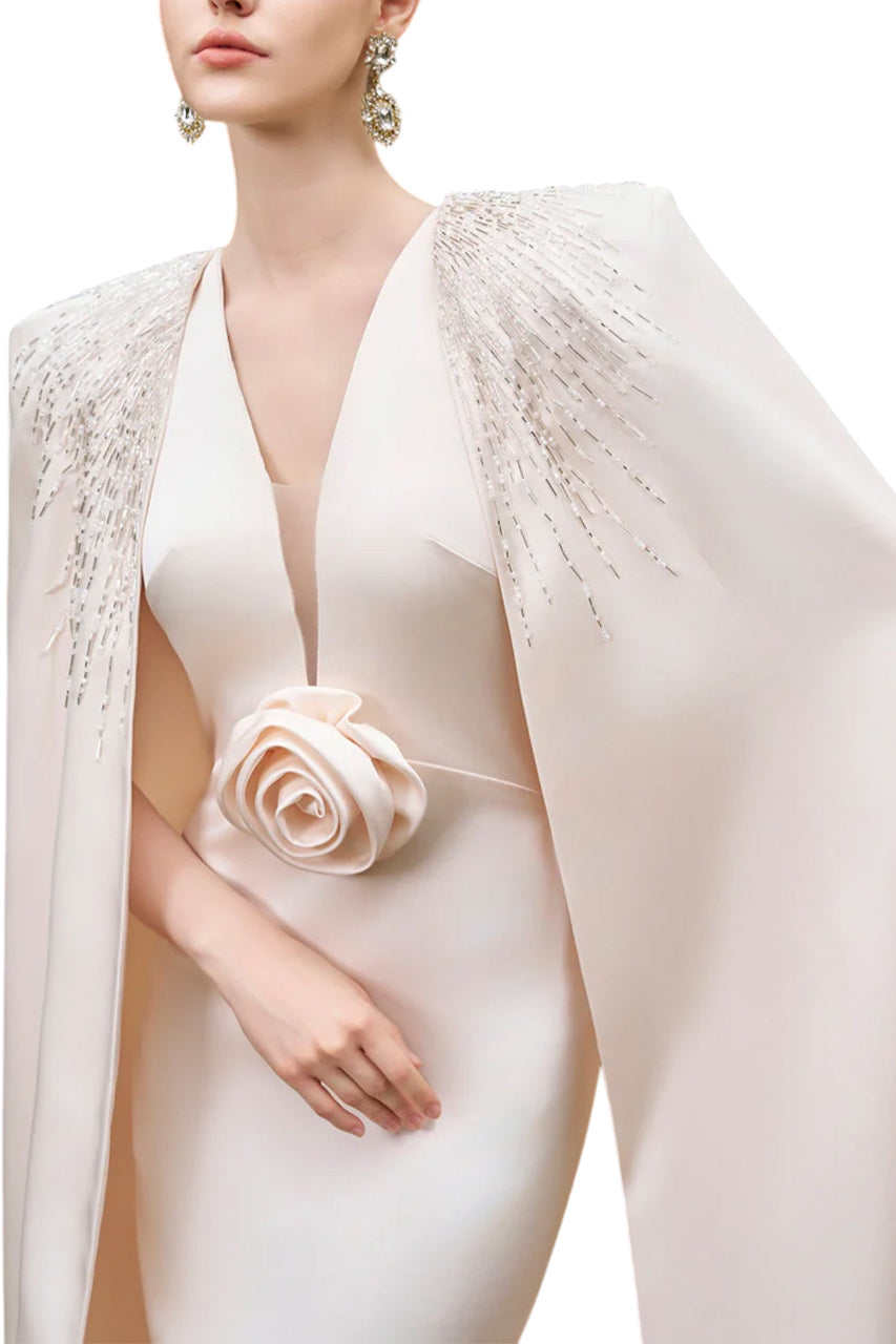 V-NECKLINE SLEEVELESS GOWN WITH LONG CAPE