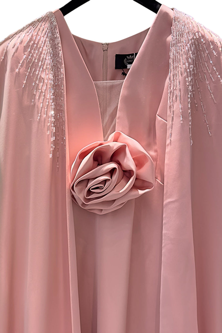 SKU: ALB-V-Neckline Sleeveless Gown With Long Cape-FR46