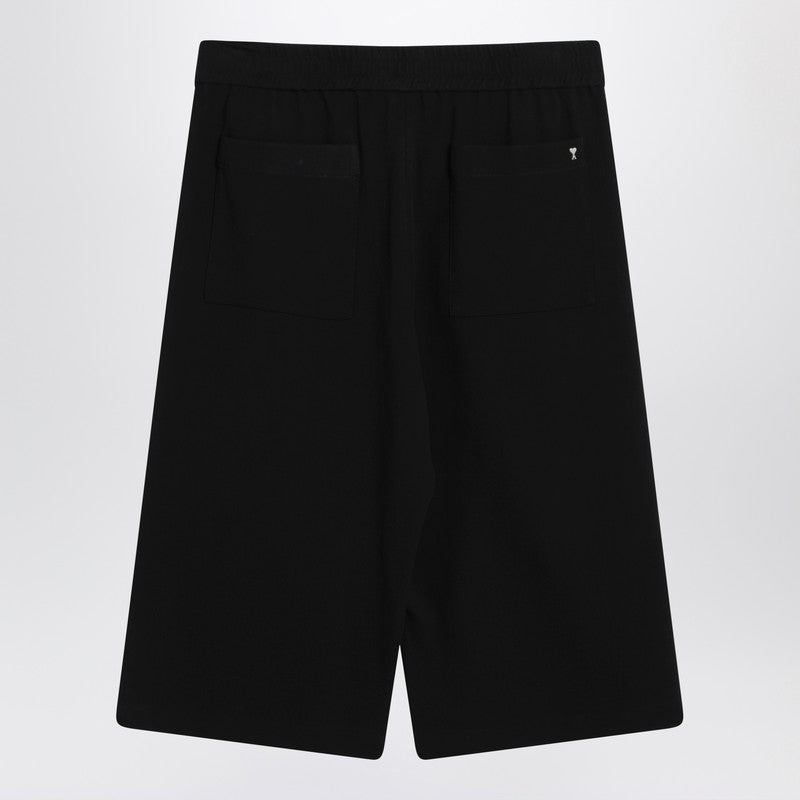 Black cotton Bermuda shorts from Ami Paris feature an elasticized waist with a secure hook, two side pockets for everyday essentials, and two additional pockets at the back for added convenience. A relaxed fit makes this piece perfect for warm weather. Made from high-quality cotton, these shorts are crafted in Romania for a durable finish.