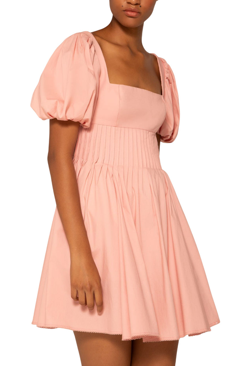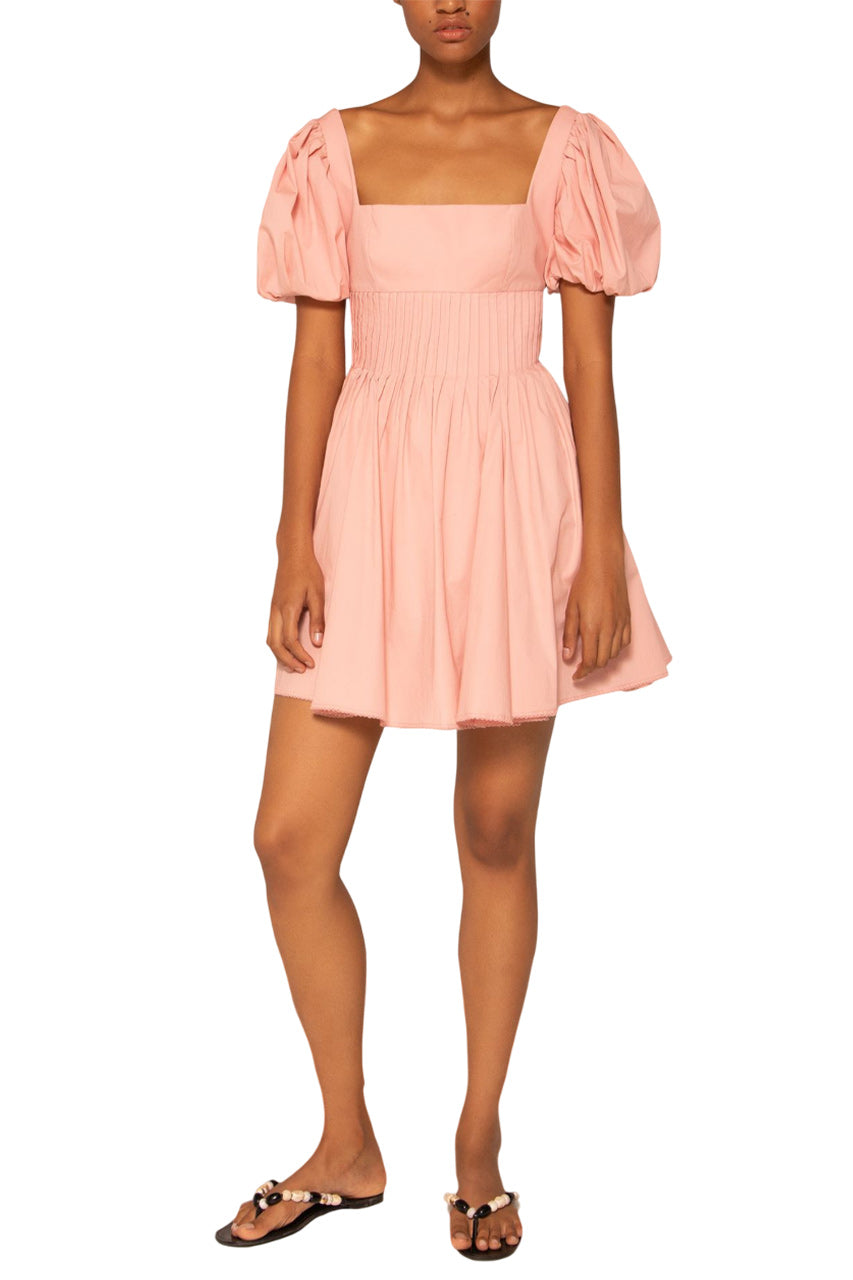 Agua by Agua Bendita's Caramelo minidress is defined by its voluminous puff sleeves. Made from cotton poplin, it has a fitted waist and flared skirt.