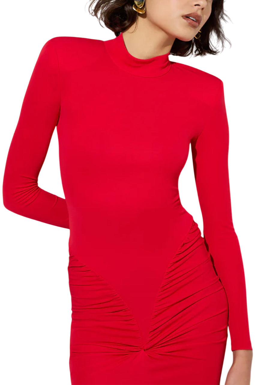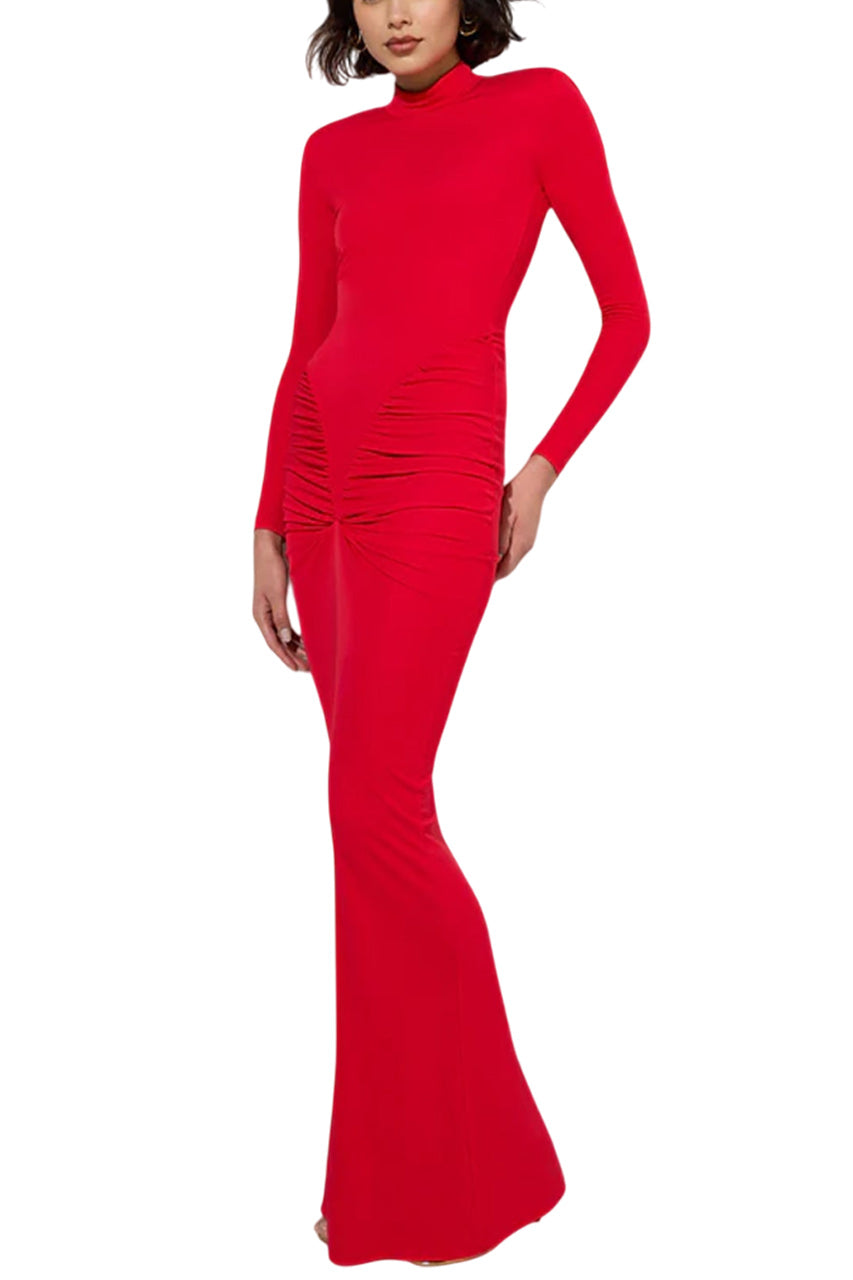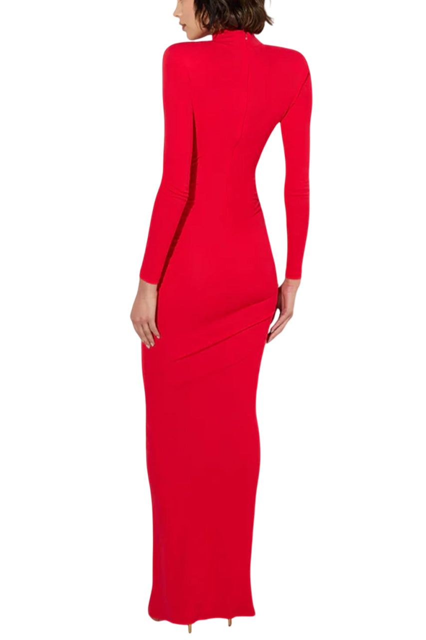 The Darja Dress offers a stylish and sophisticated look with its turtleneck and long sleeves. The ruched skirt and maxi hem add a touch of elegance, while the concealed zip fastening along the back ensures a seamless fit. Perfect for any occasion, this dress exudes timeless charm and effortless grace.