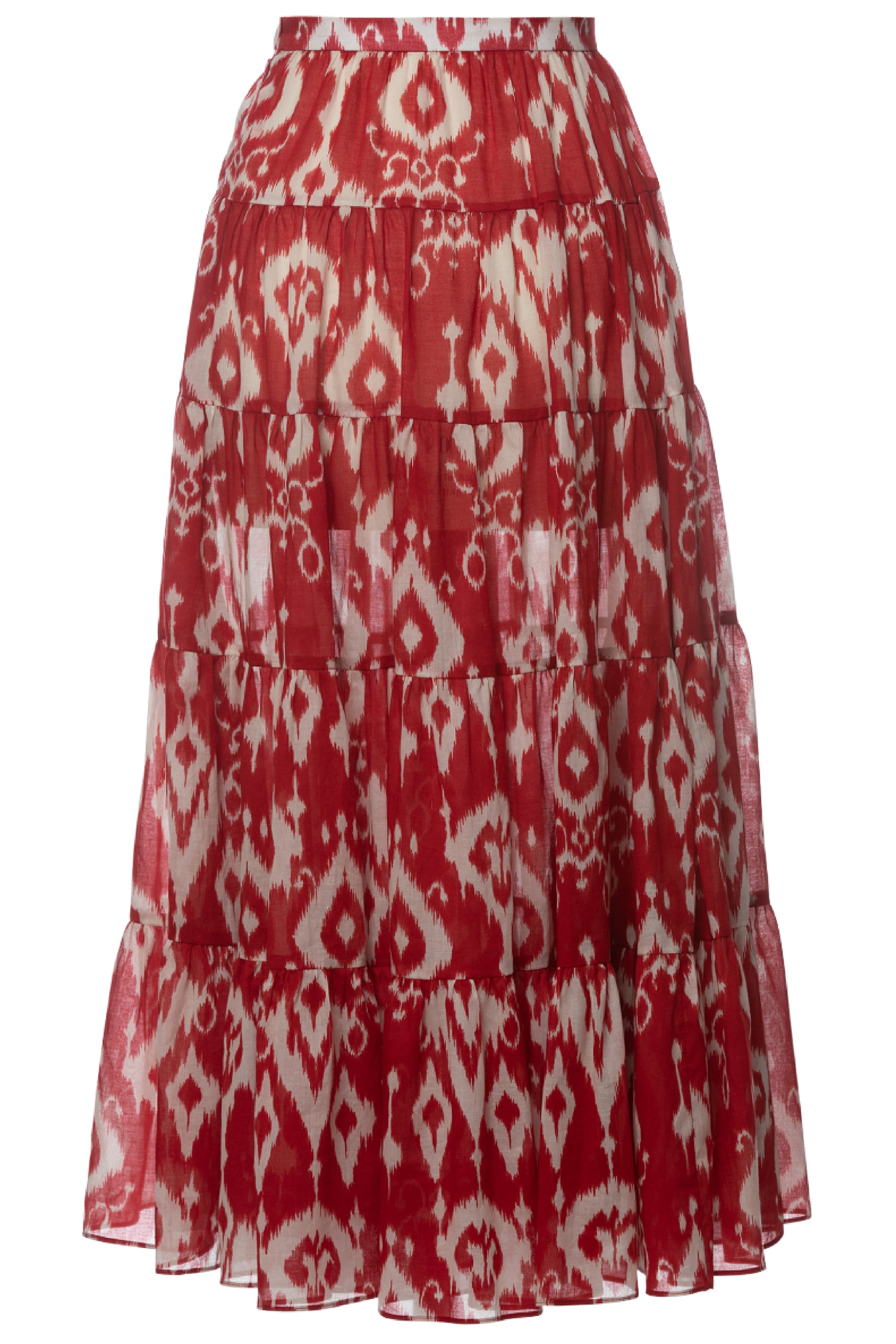 The tiered, ankle-length skirt sits high on the waist, creating a classic silhouette. Pair it with the brand's Sightseeing Blouse for an all-over ikat look.