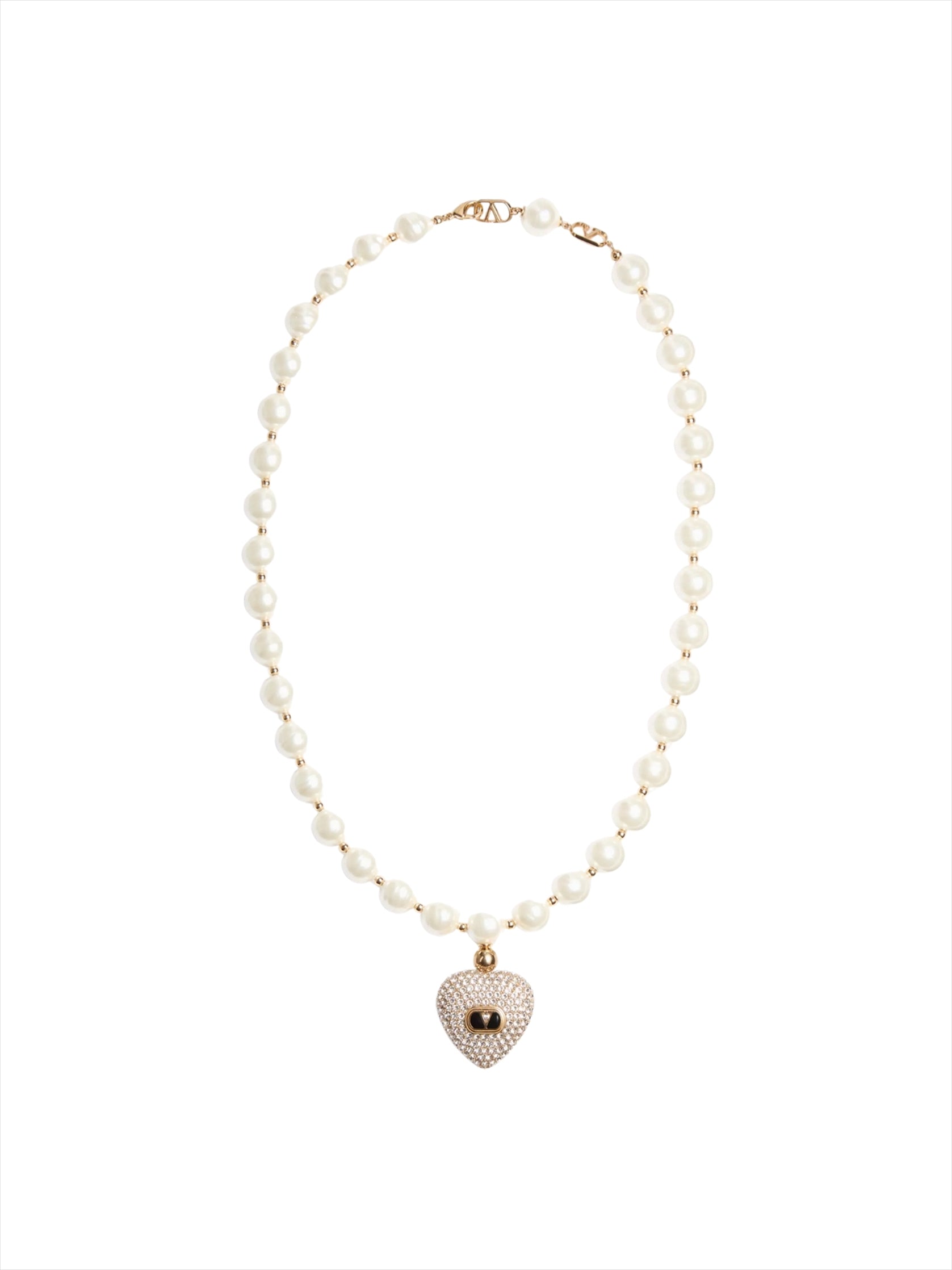 Elevate your style with this sleek gold-plated necklace. A modern VLogo signature meets a delicate heart pendant, paired with subtle faux-pearl accents and glass crystal details. Adjustable in length, this chain effortlessly adapts to your look, making it perfect for everyday wear or special occasions. A timeless piece that exudes understated elegance.
