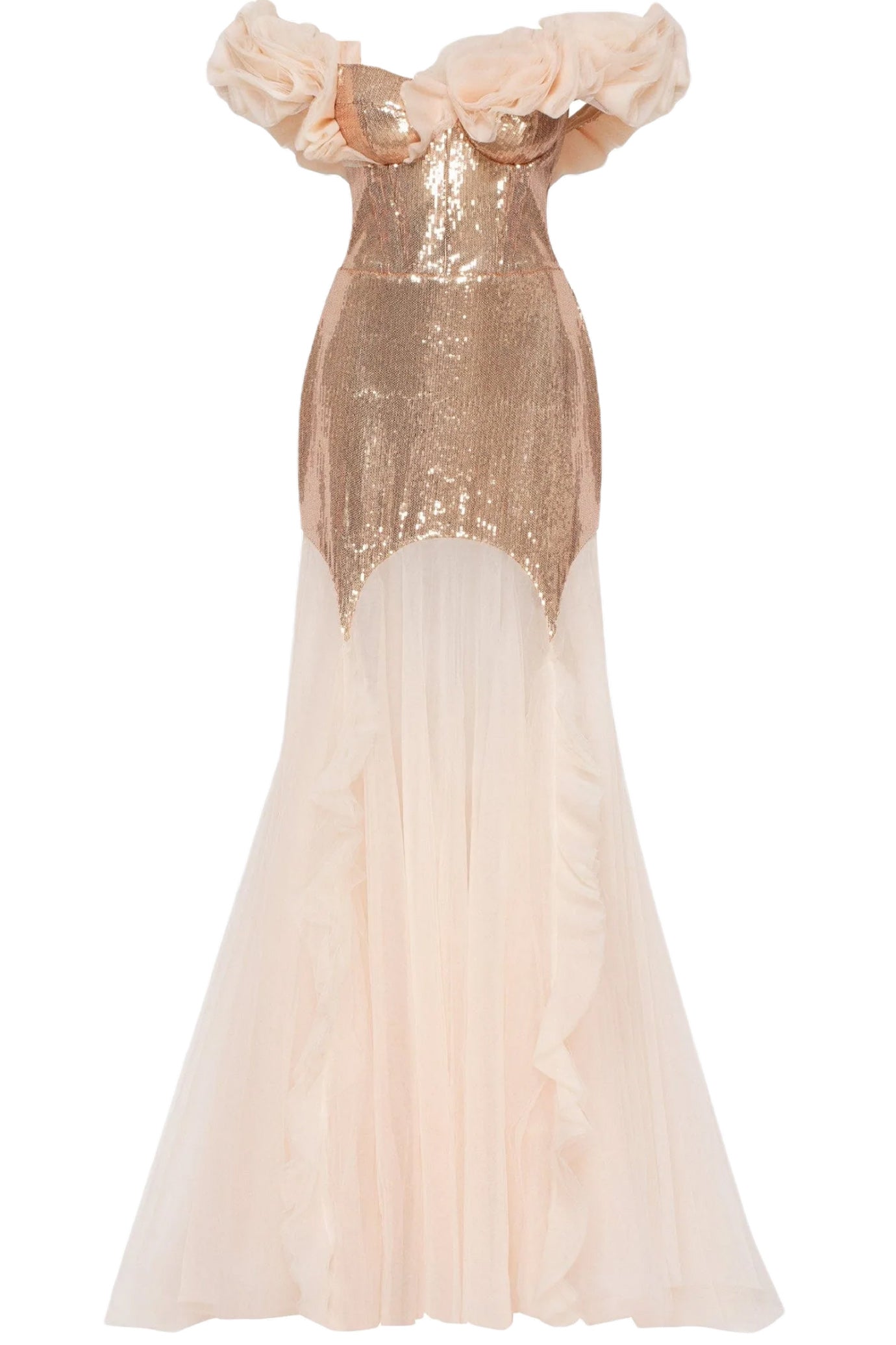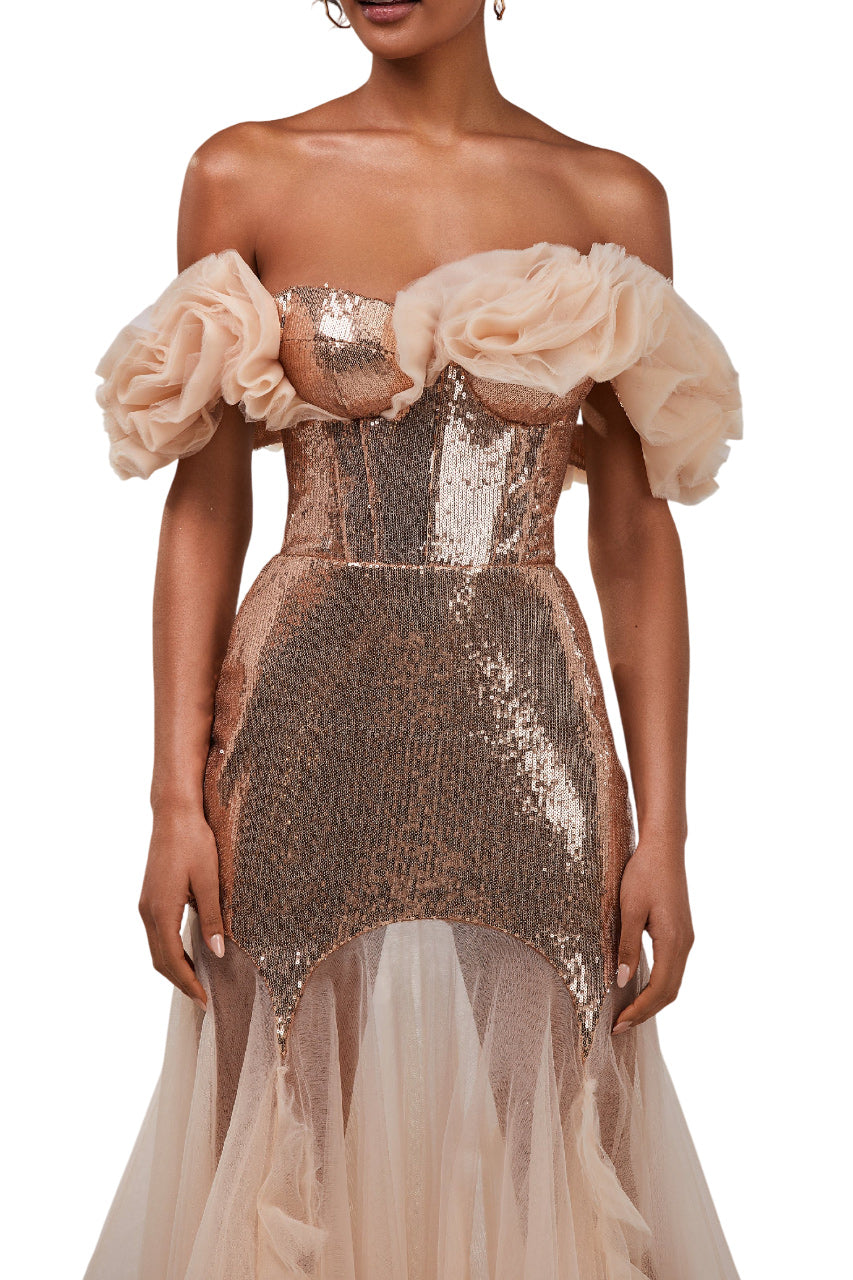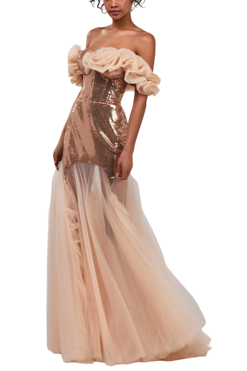 SKU: ALB-Off Shoulder Sequin Gown-FR36