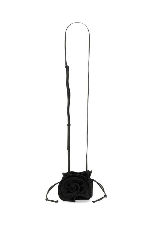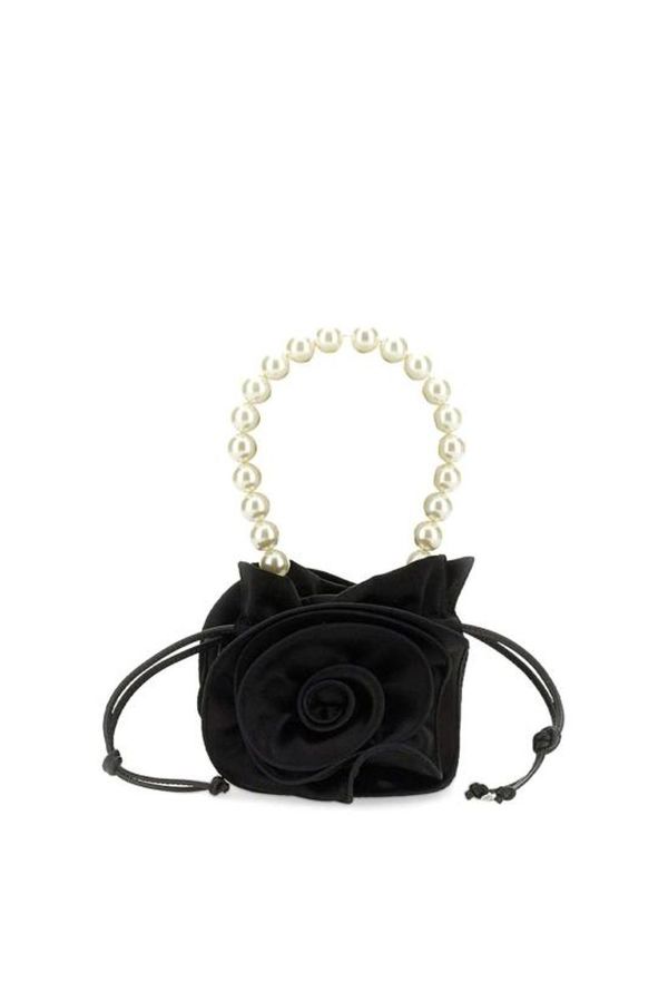 Magda bag: a statement bucket bag featuring 3D roses on either side of the satin body. The classic design is elevated by a detachable leather crossbody strap, as well as an optional pearl handle for added elegance. A true showstopper from Magda Butrym's iconic collection.