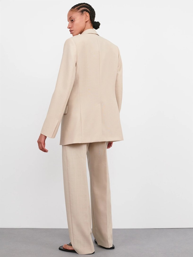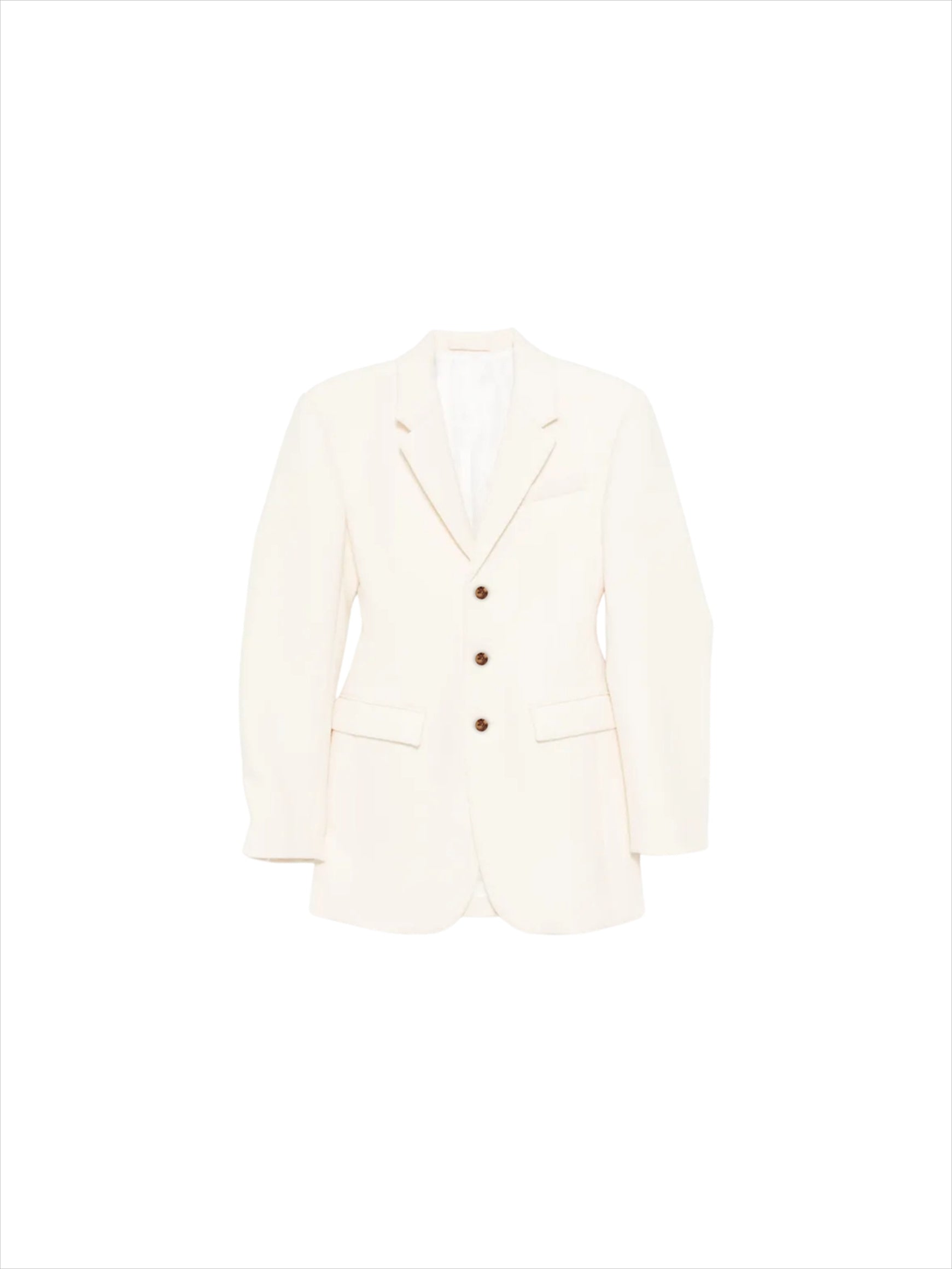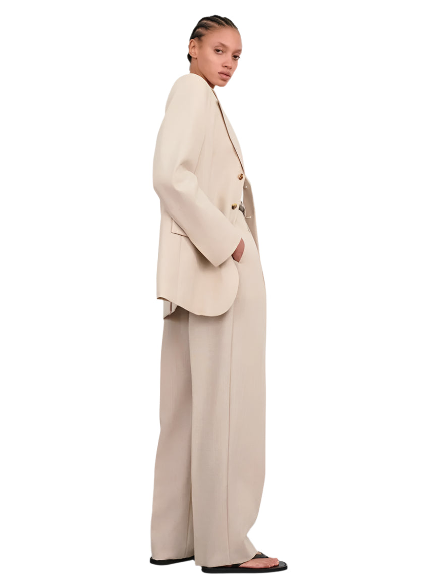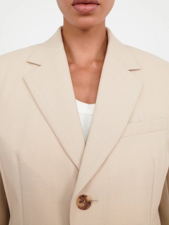 This longline blazer boasts a streamlined, modern silhouette crafted from Italian virgin wool suiting. The subtle malfilé texture and lightly textured hand add depth to its sleek design. Key features include a three-button closure, classic notch lapel, and functional welt pockets with flap detailing. Pair with the Mid Rise Trouser and RHW Belt for a sharp, put-together look.