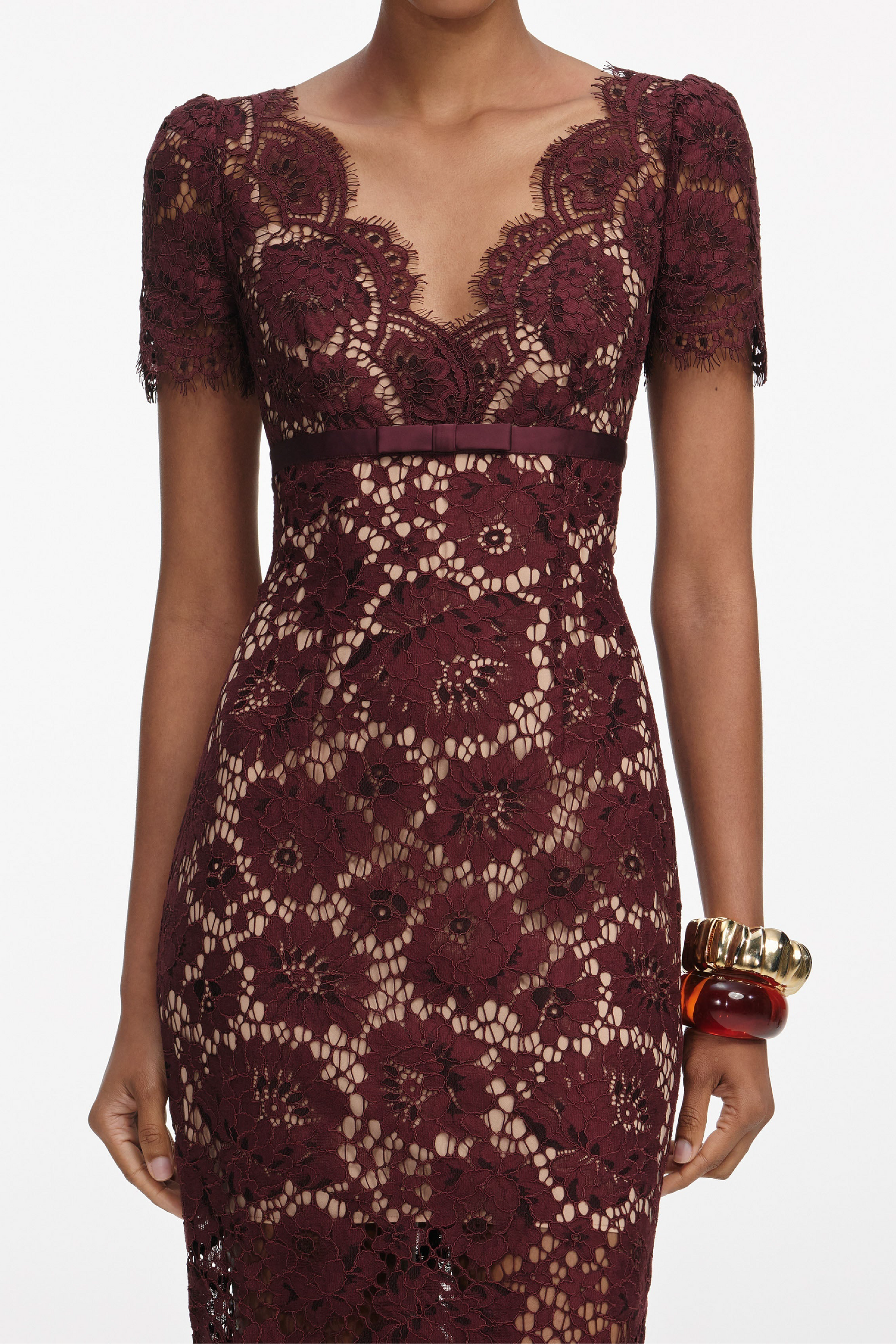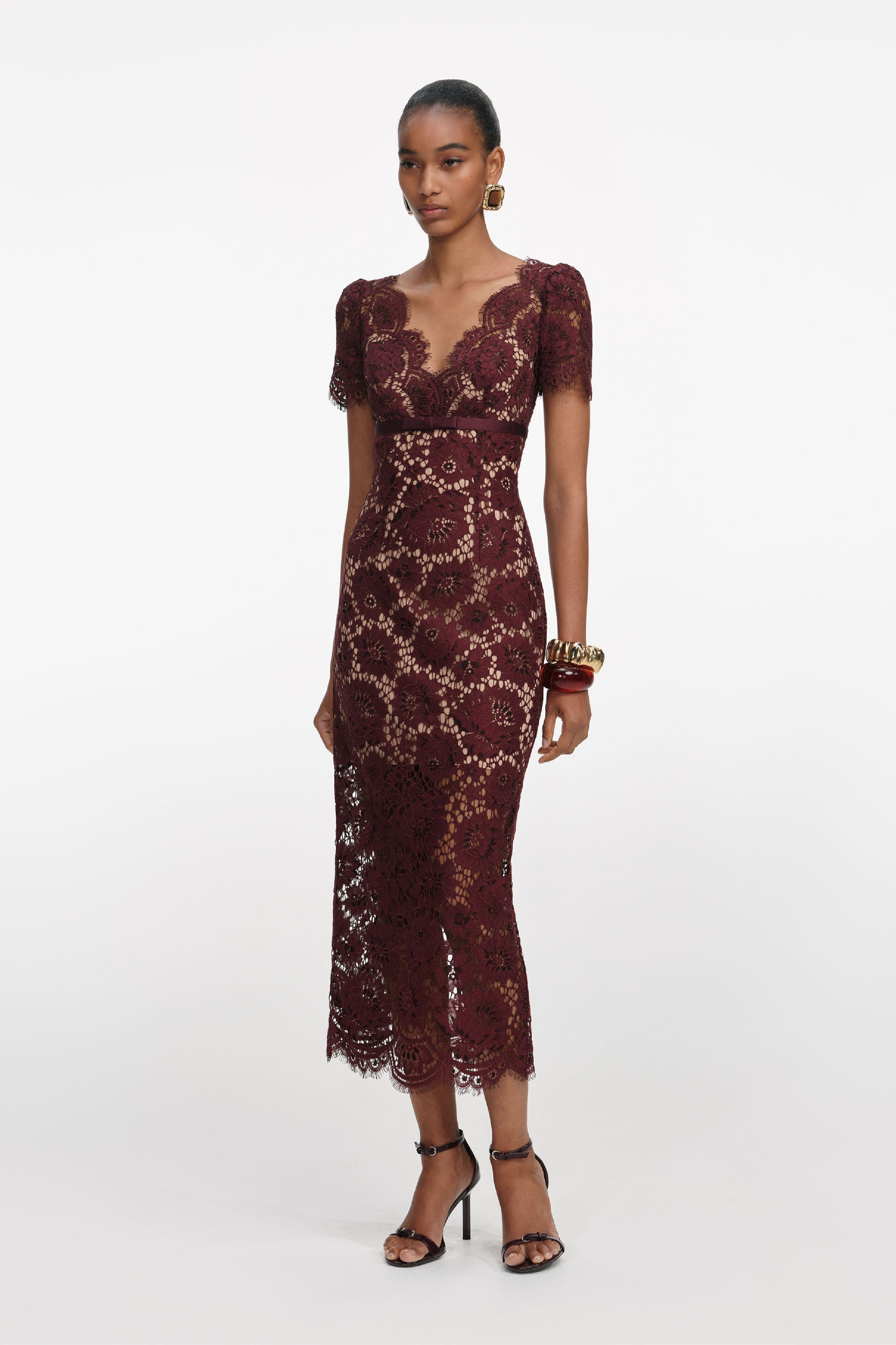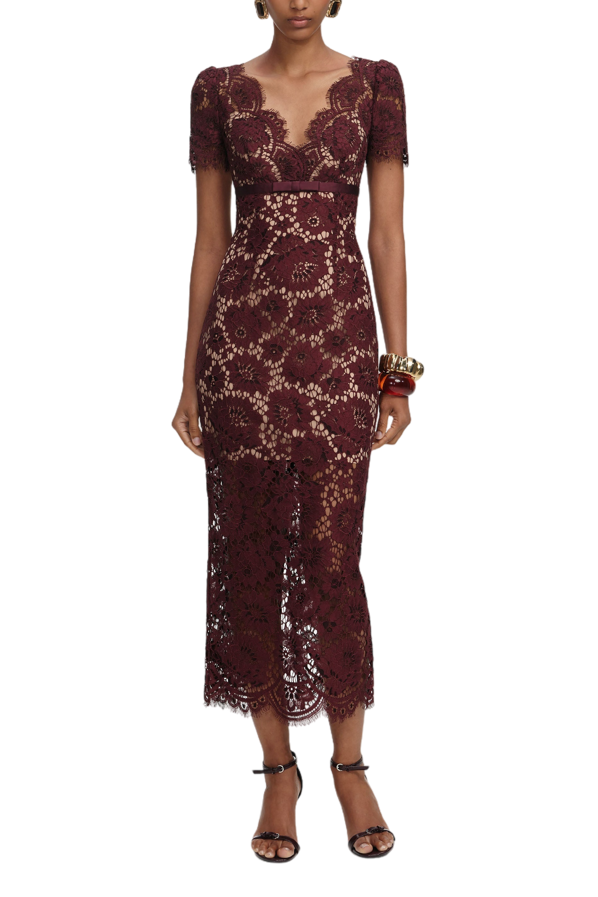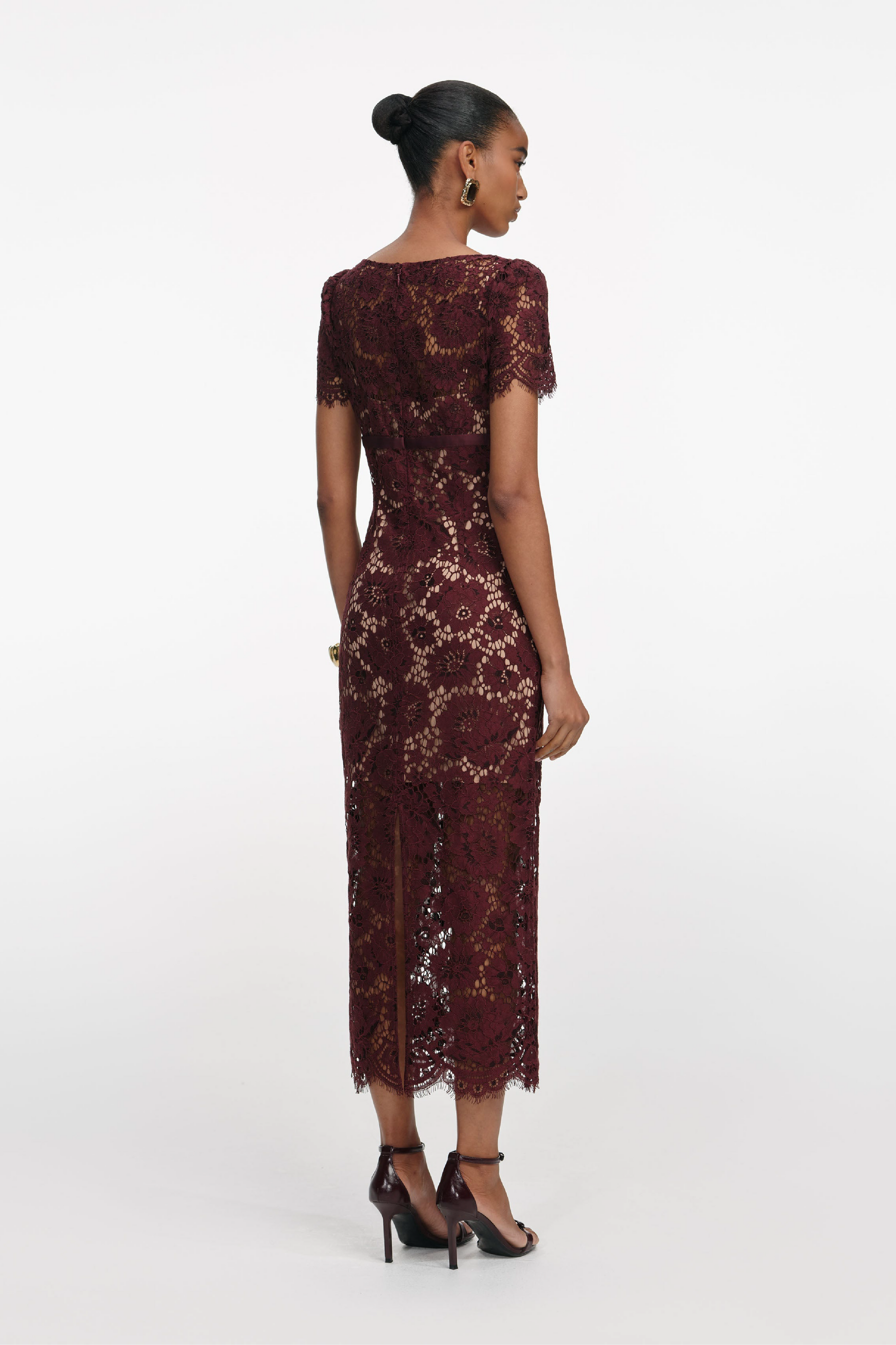 SKU: ALB-Burgundy Floral Lace Midi Dress-UK8