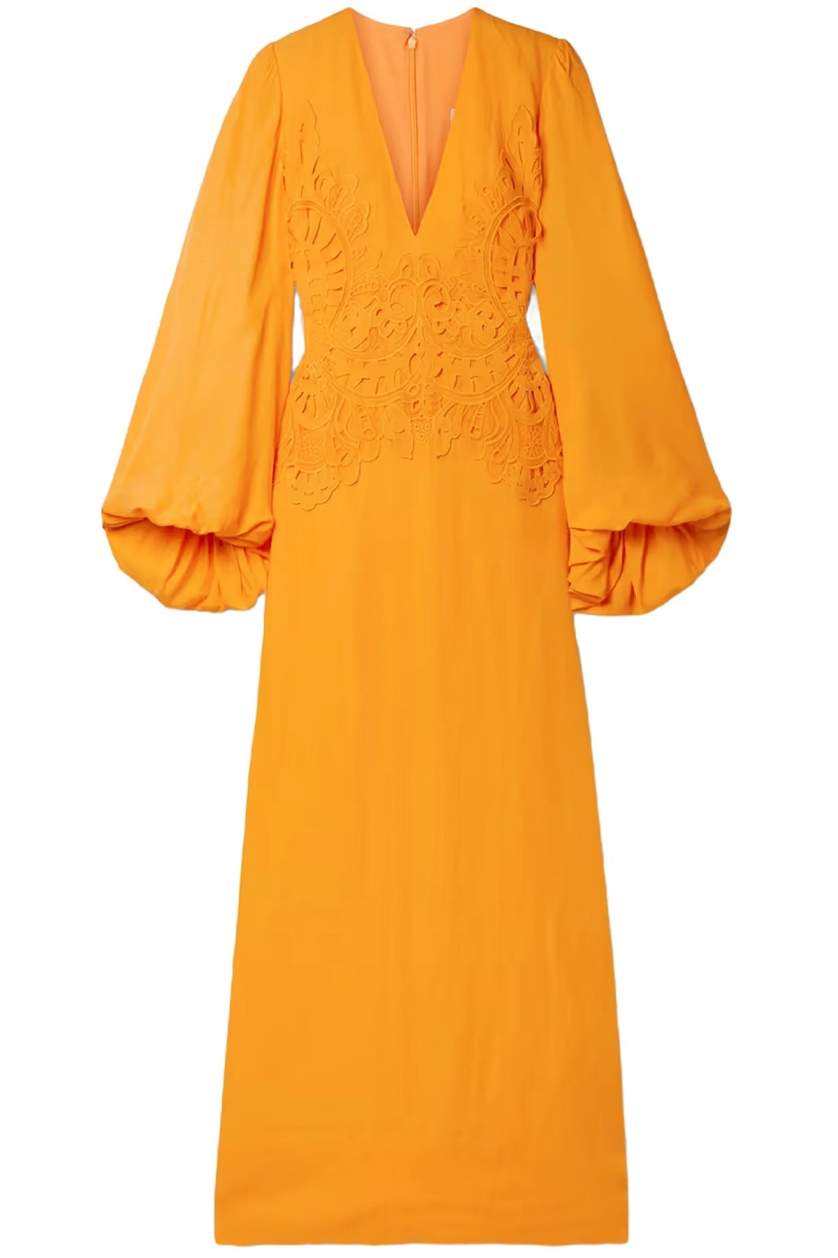 This luxuriously soft Katana Linen Caftan is woven with a touch of linen and features a vibrant 'Tangerine' hue. It's nipped-in waist and voluminous bishop sleeves offer a flattering silhouette for any occasion. Style it with heeled sandals for a chic, elegant look.