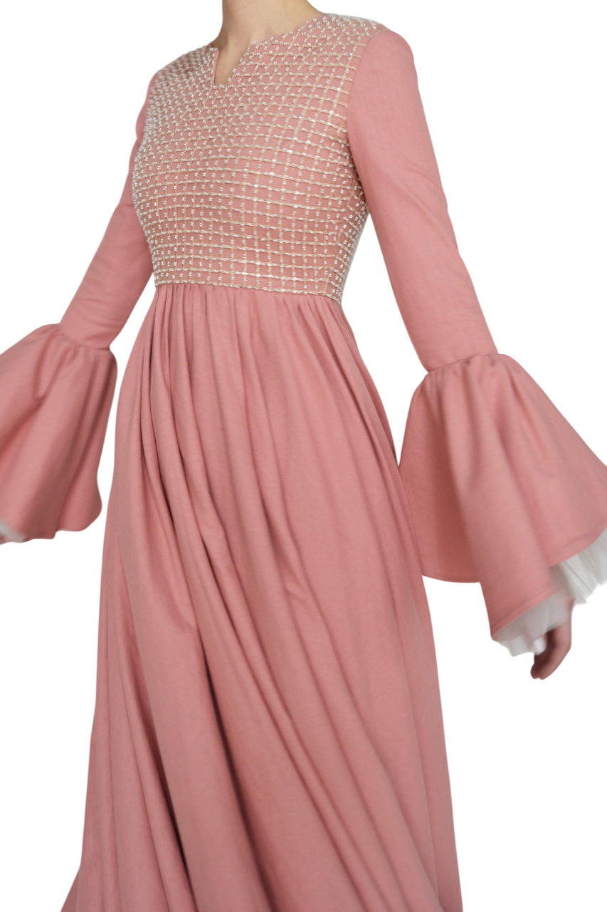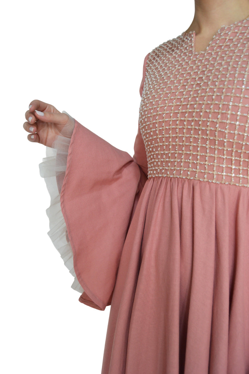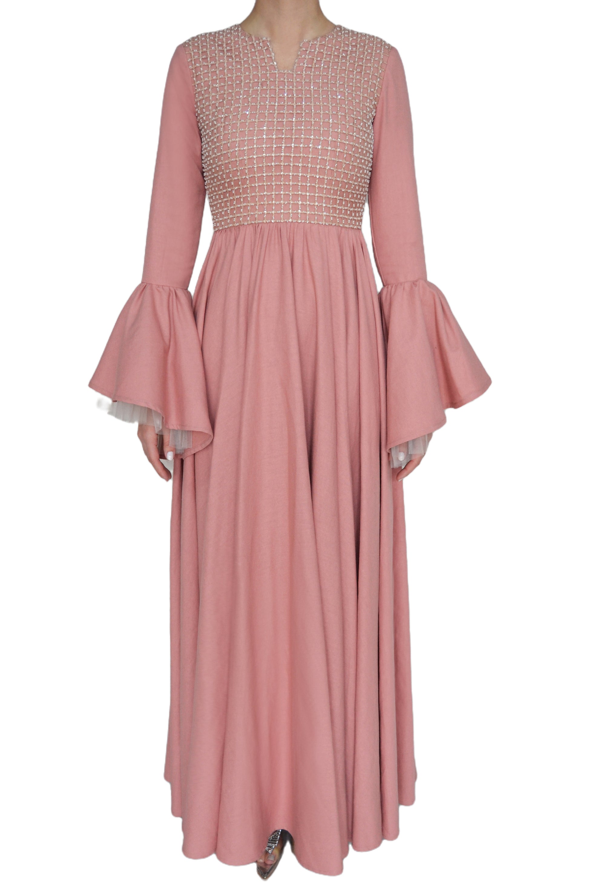 SKU: ALB- Linen Caftan with Grid Embroidery-S