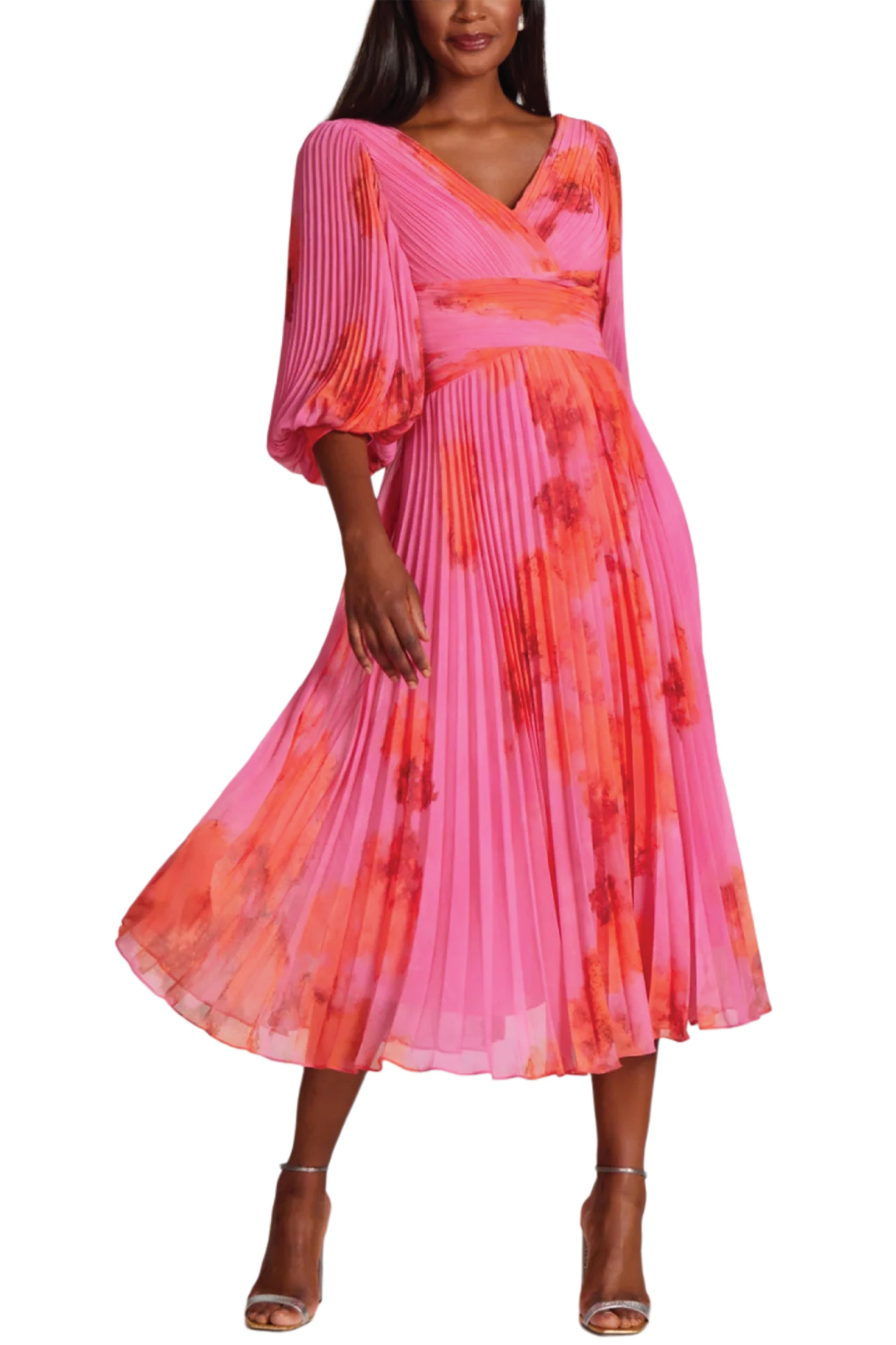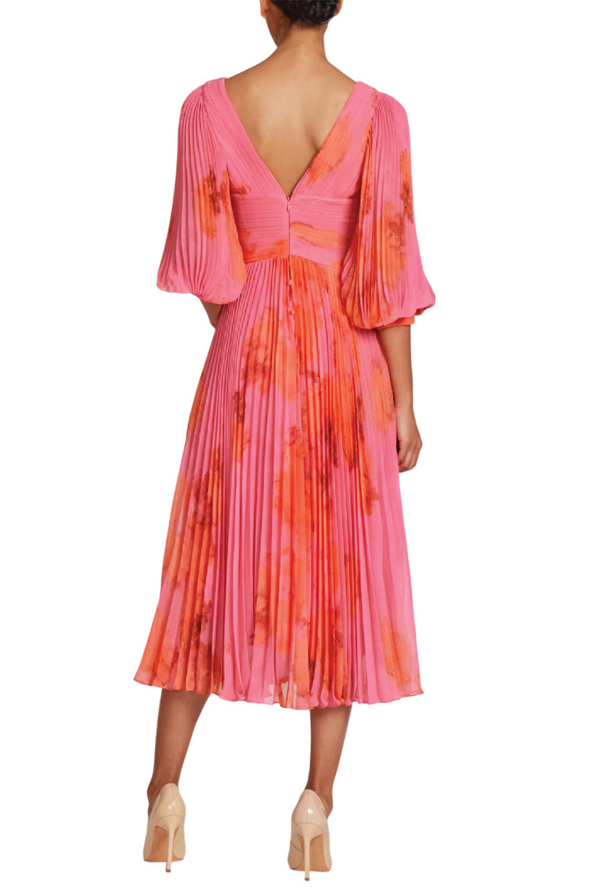 PRINTED CHIFFON PLEATED FULL SLEEVE DRESS