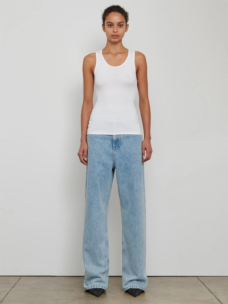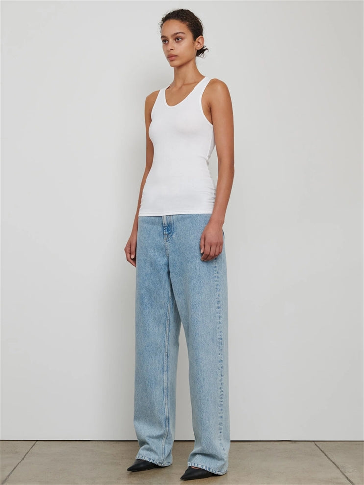 Ribbed cotton tank top with a sleek, elongated silhouette and slim fit. Made from breathable, soft cotton rib fabric, this timeless design exudes effortless style and comfort.