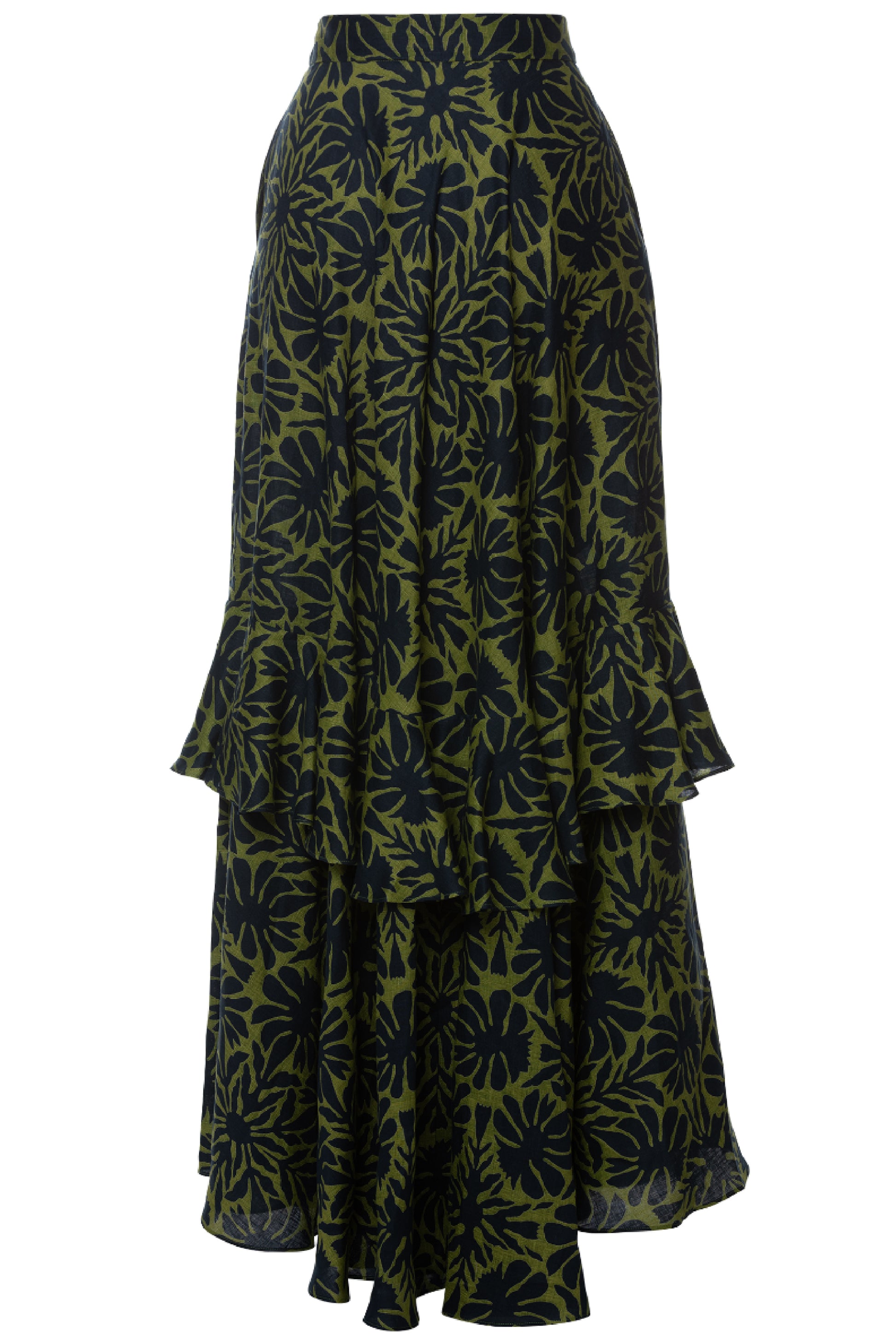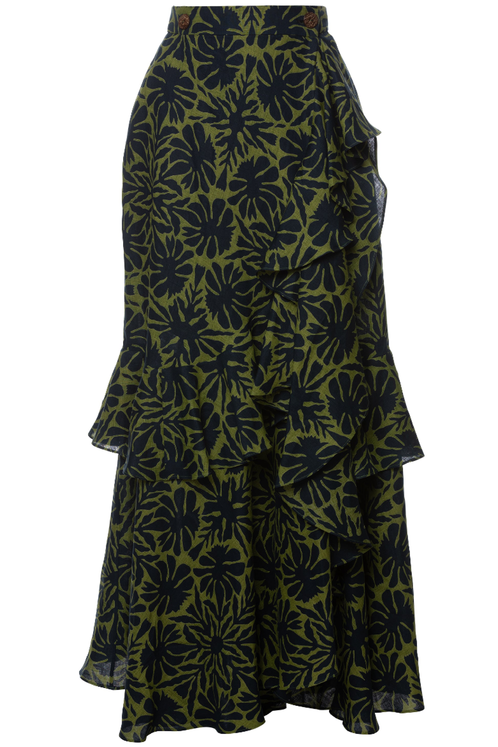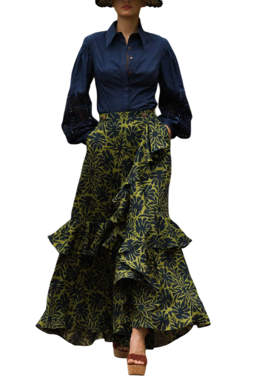 The Tango Skirt by Lena Hoschek features a relaxed fit, ruffled trim, maxi hemline and dual slit pockets.