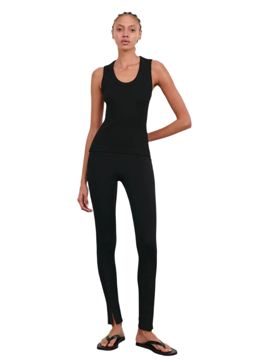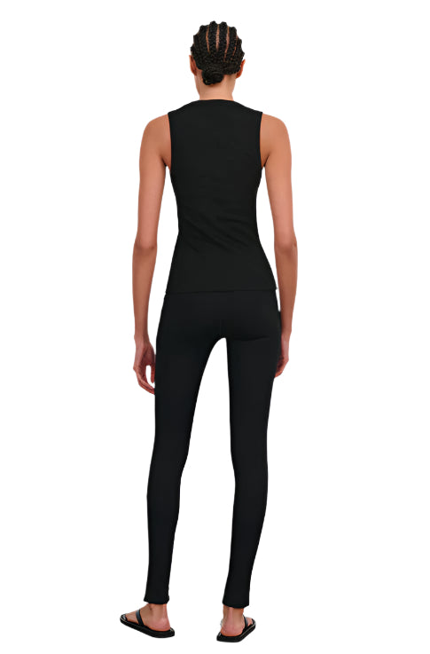 Crafted from Italian cotton-blend jersey, this essential tank features a modern silhouette with a refined scooped neckline and wide shoulder straps. The matte finish and ribbed texture provide a comfortable, understated look. A hip-length hem completes the design, perfect for layering or wearing on its own. Pair with the Opaque Front Zip Legging for a timeless, effortless look.