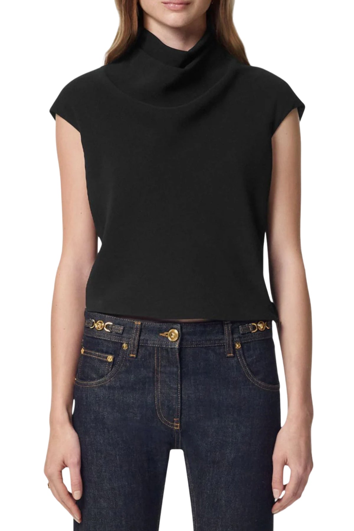 This top boasts a clean design with a round neck and short sleeves. A rear zip fastening provides easy on-and-off convenience, while the straight hem adds a streamlined touch.