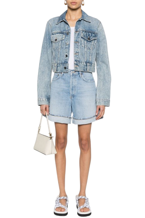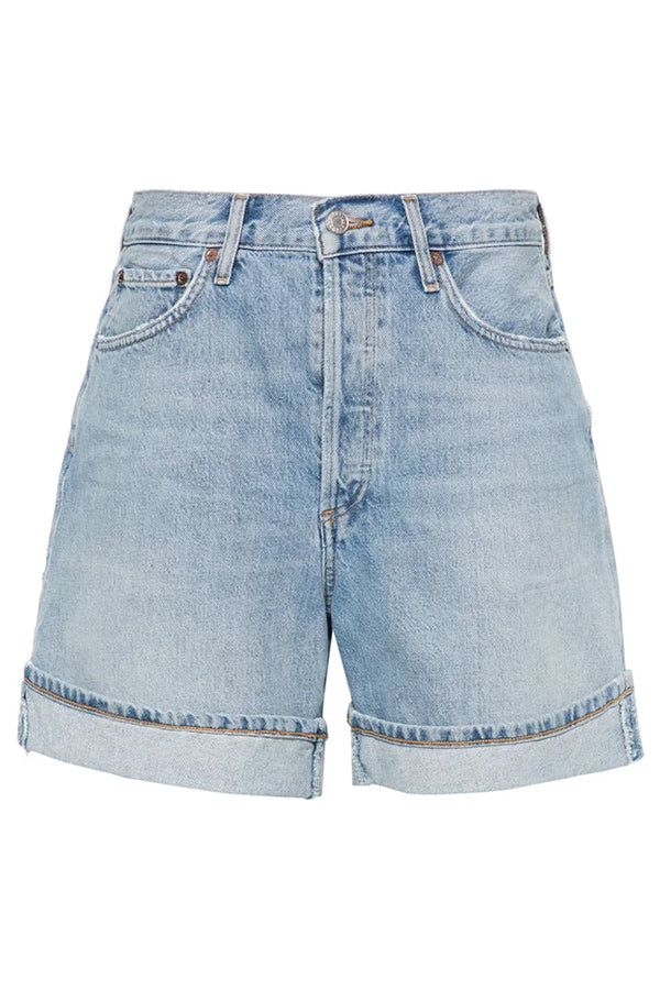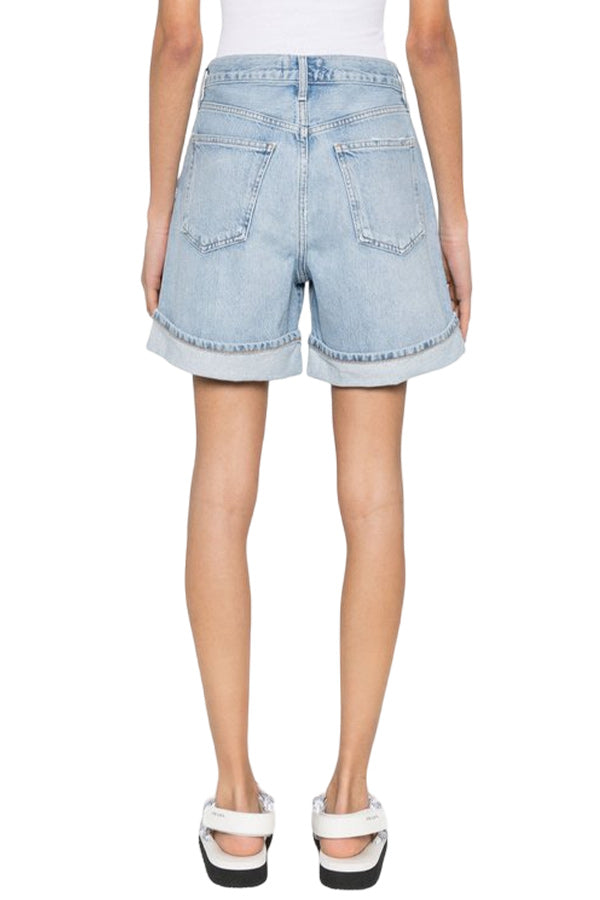 Crafted from washable, sustainable cotton, these high-waisted denim shorts marry style with practicality. A wide leg and thigh-length design provide effortless comfort, while five classic pockets, a turned-up hem, and unlined interior ensure ease of use. Silver-tone hardware adds a touch of sophistication, complemented by belt loops and a convenient button fly fastening.