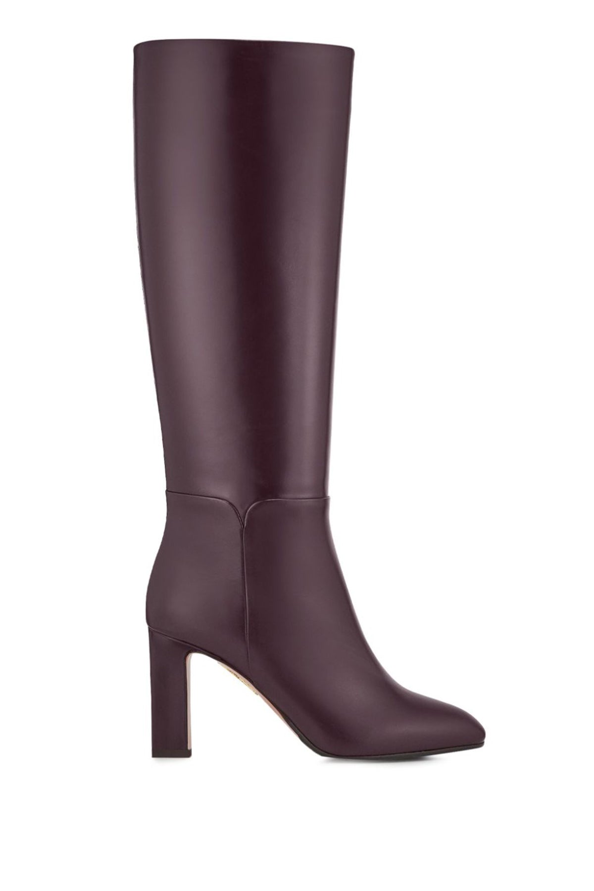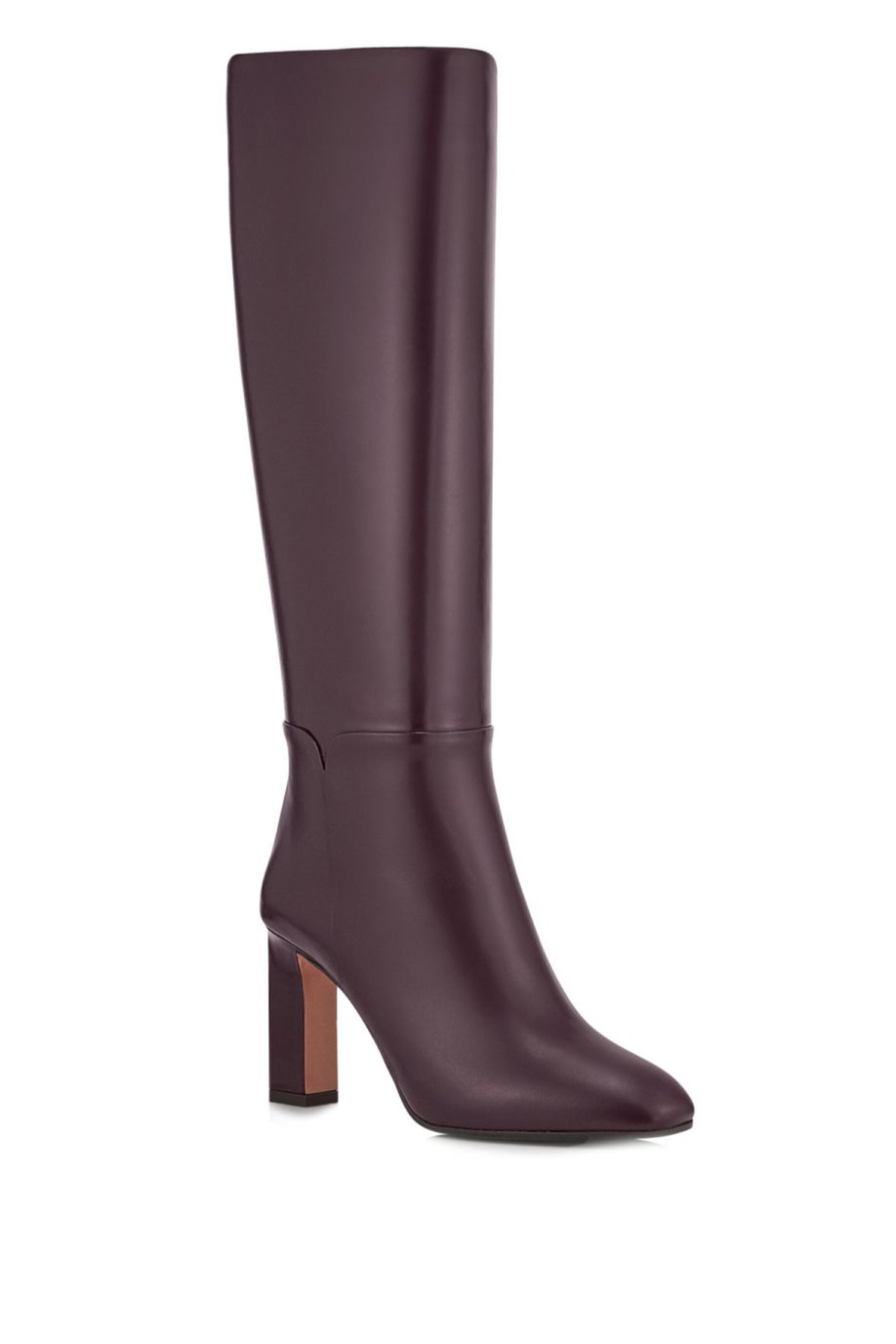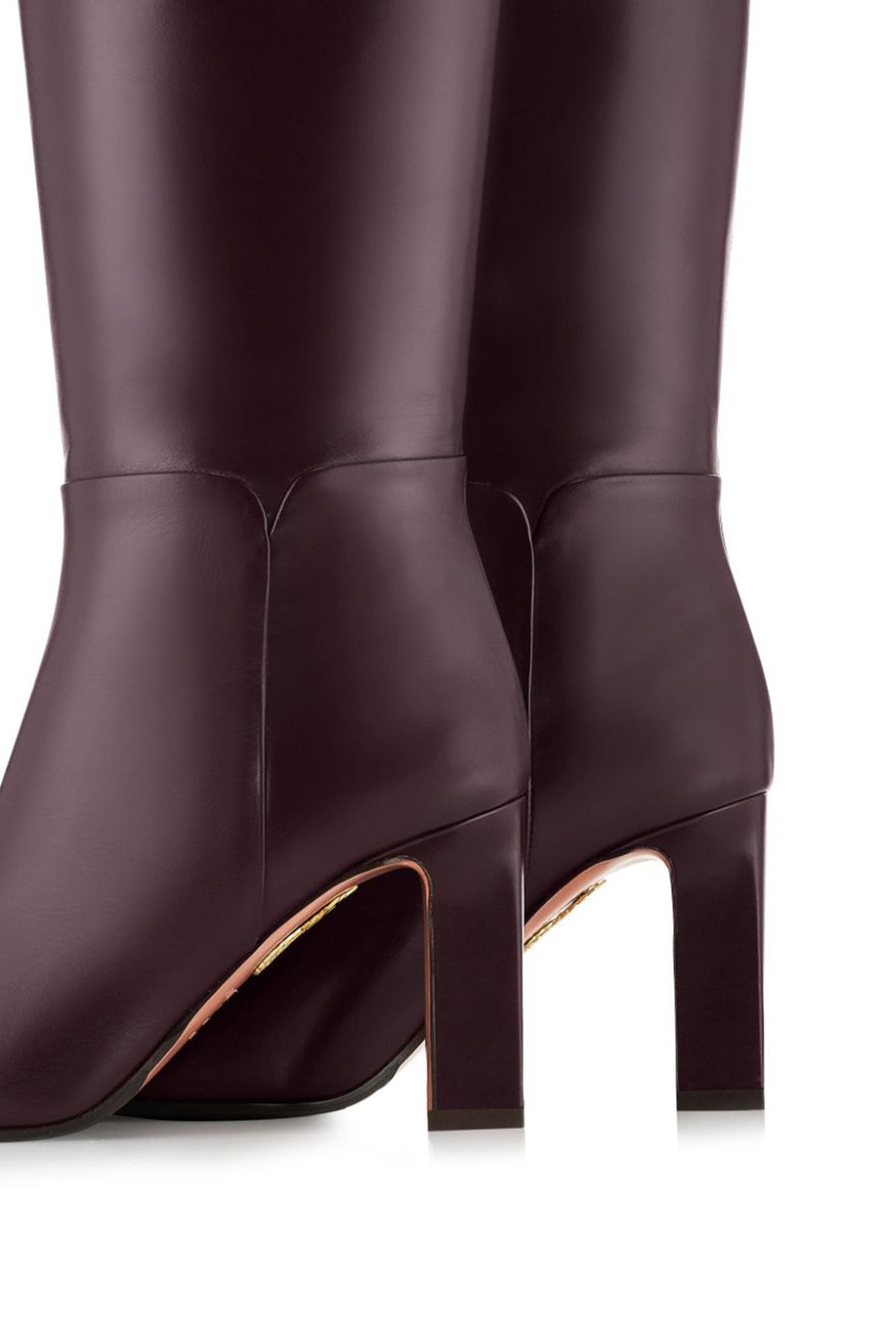 Aubergine-hued leather defines the sleek, almond-toed design of these Aquazzura boots. A leather-lined interior and sole provide comfort and durability. The broad, leather-covered heel completes the sophisticated look, making these statement boots perfect for elevating any outfit with effortless elegance.