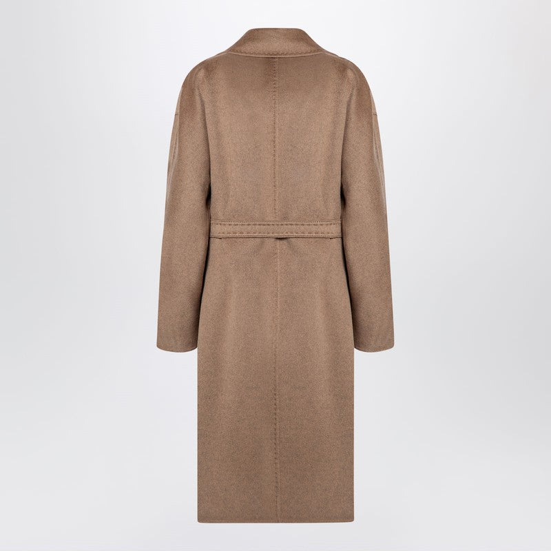Soft camel-hued cashmere coat from Max Mara Atelier, crafted with a focus on effortless elegance. Wide lapels, long sleeves, and a belted waist define the silhouette, while two side pockets provide practicality. Made from the finest Italian cashmere, this coat is a masterclass in understated sophistication.