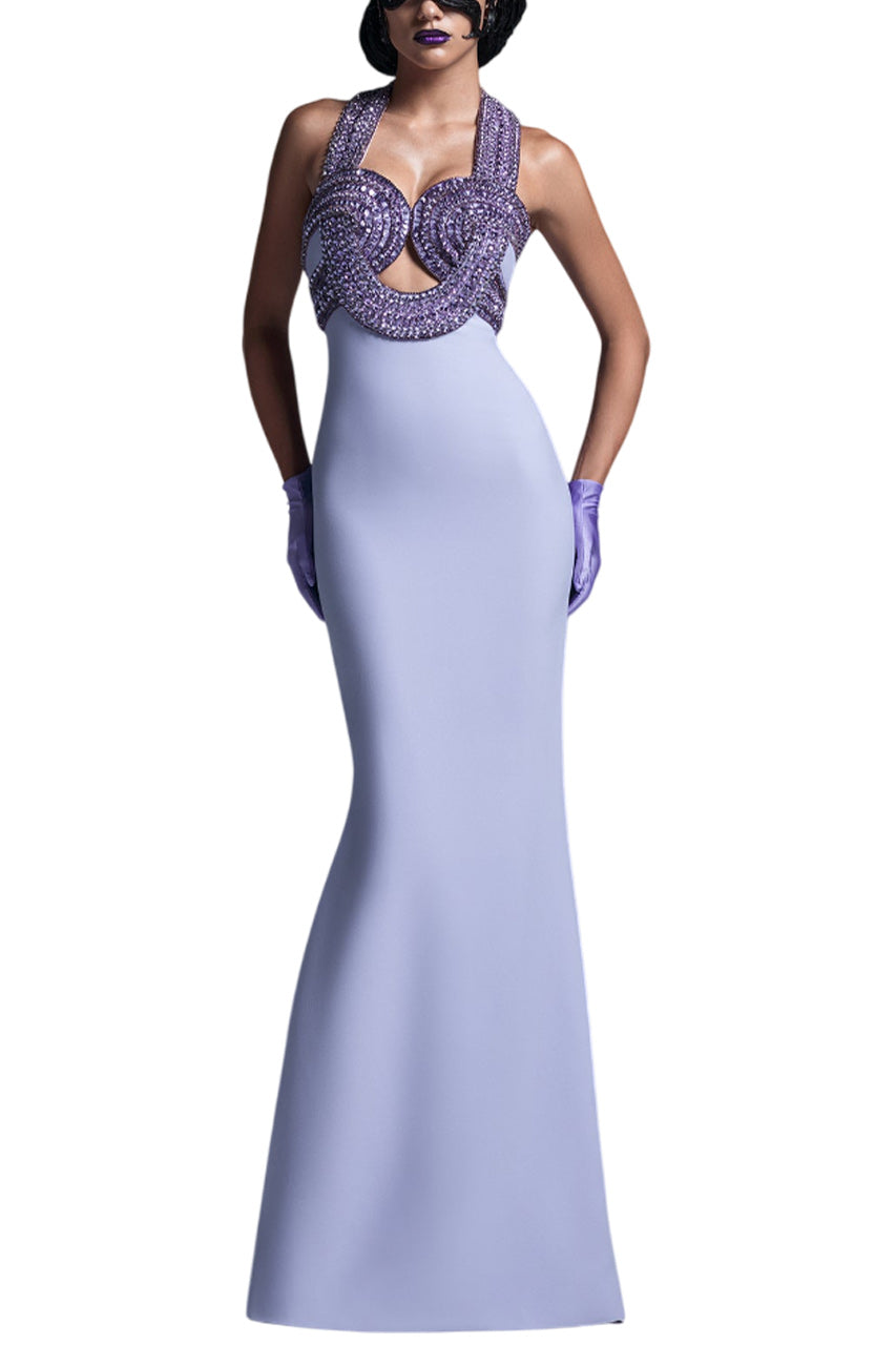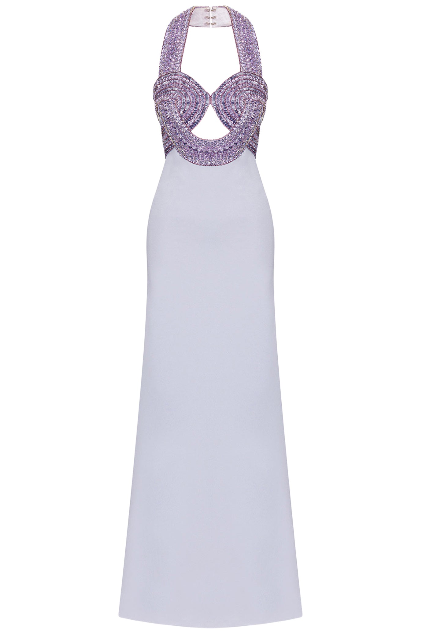 Indulge in timeless style and luxury with the Bustier Hand Decorated with Crystals Gown by Afffair. Featuring an embellished bustier and elegant lilac fabric, this figure-hugging maxi dress exudes femininity and elegance. Handcrafted with care and adorned with hand-applied crystals, this dress is the perfect choice for your special event.
