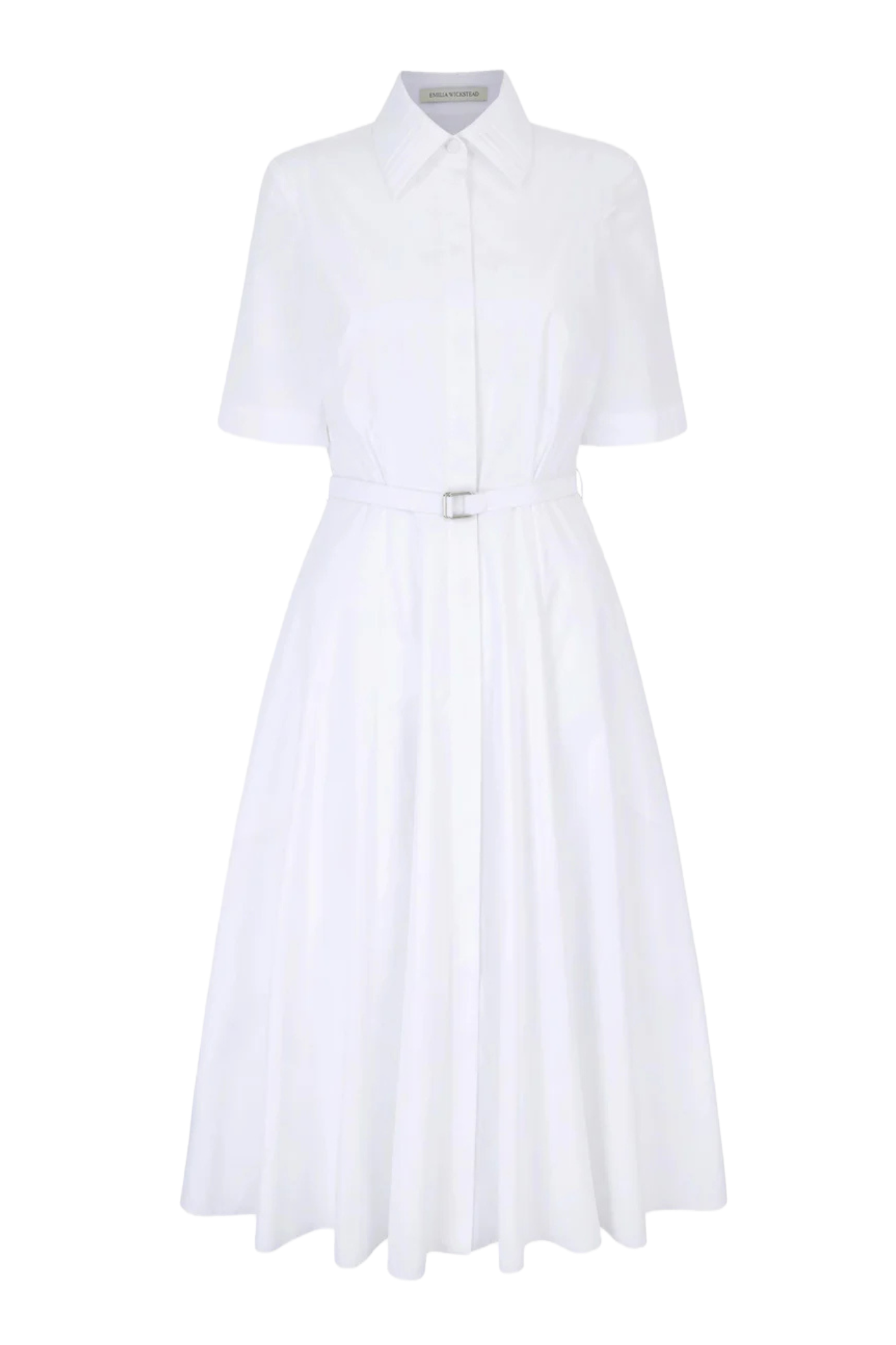 The Rubie Dress in White Cotton by Emilia Wickstead offers a refined blend of classic elegance and modern craftsmanship. Crafted from high-quality white cotton, this dress ensures breathability and comfort while maintaining a crisp, polished look. Its tailored silhouette enhances the wearer’s form with subtle sophistication, making it an ideal choice for both formal occasions and stylish daytime events. The minimalist design highlights expert tailoring, allowing versatility and timeless appeal in your wardrobe.