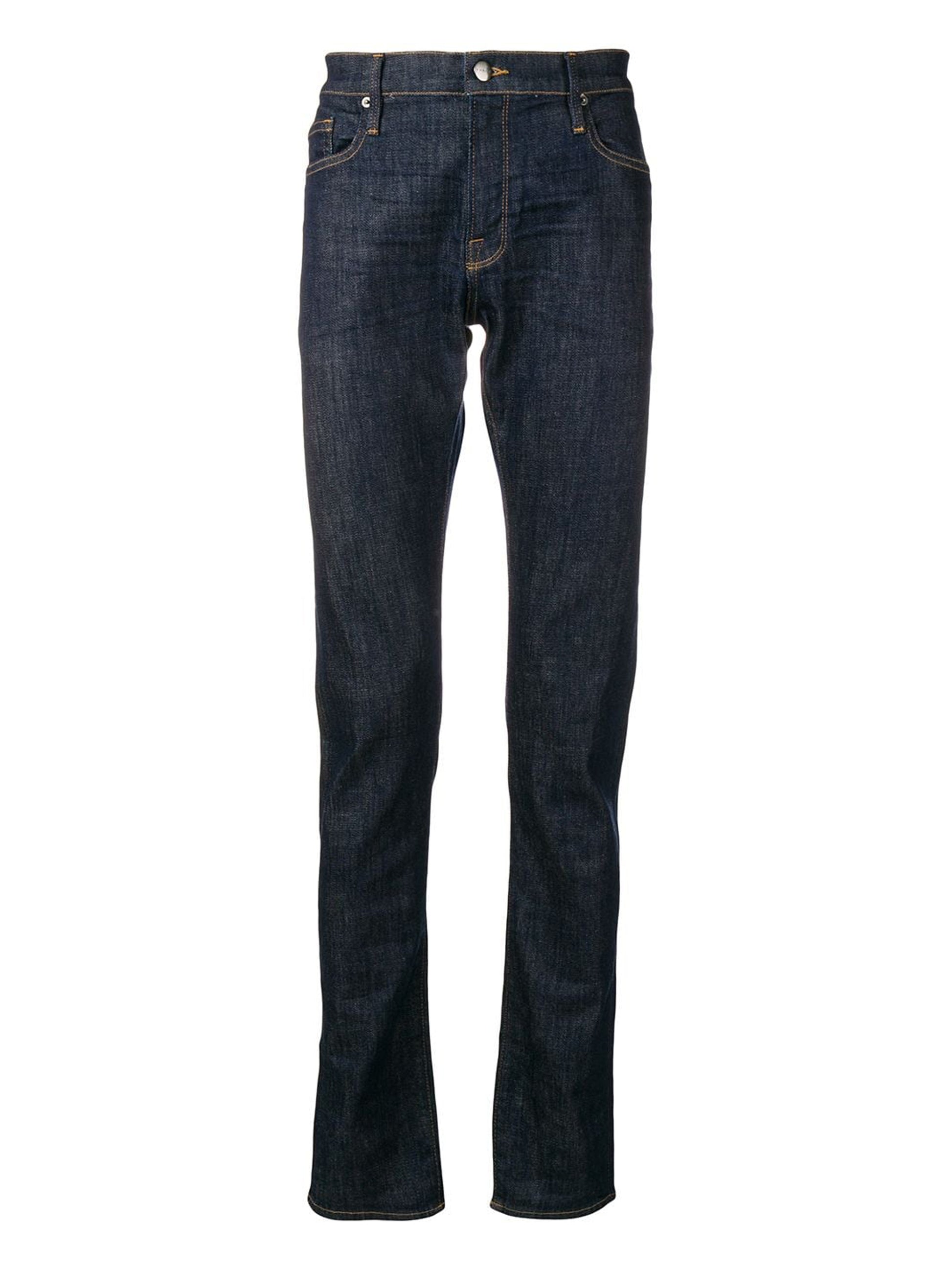 Crafted from a lightweight blend of 94% cotton, 5% polyester, and 1% spandex, these slim-fit jeans feature a mid-rise cut and a classic five-pocket design. With a button and zip fastening, they provide a secure and stylish fit. Machine washable for easy care. Made in the USA.
