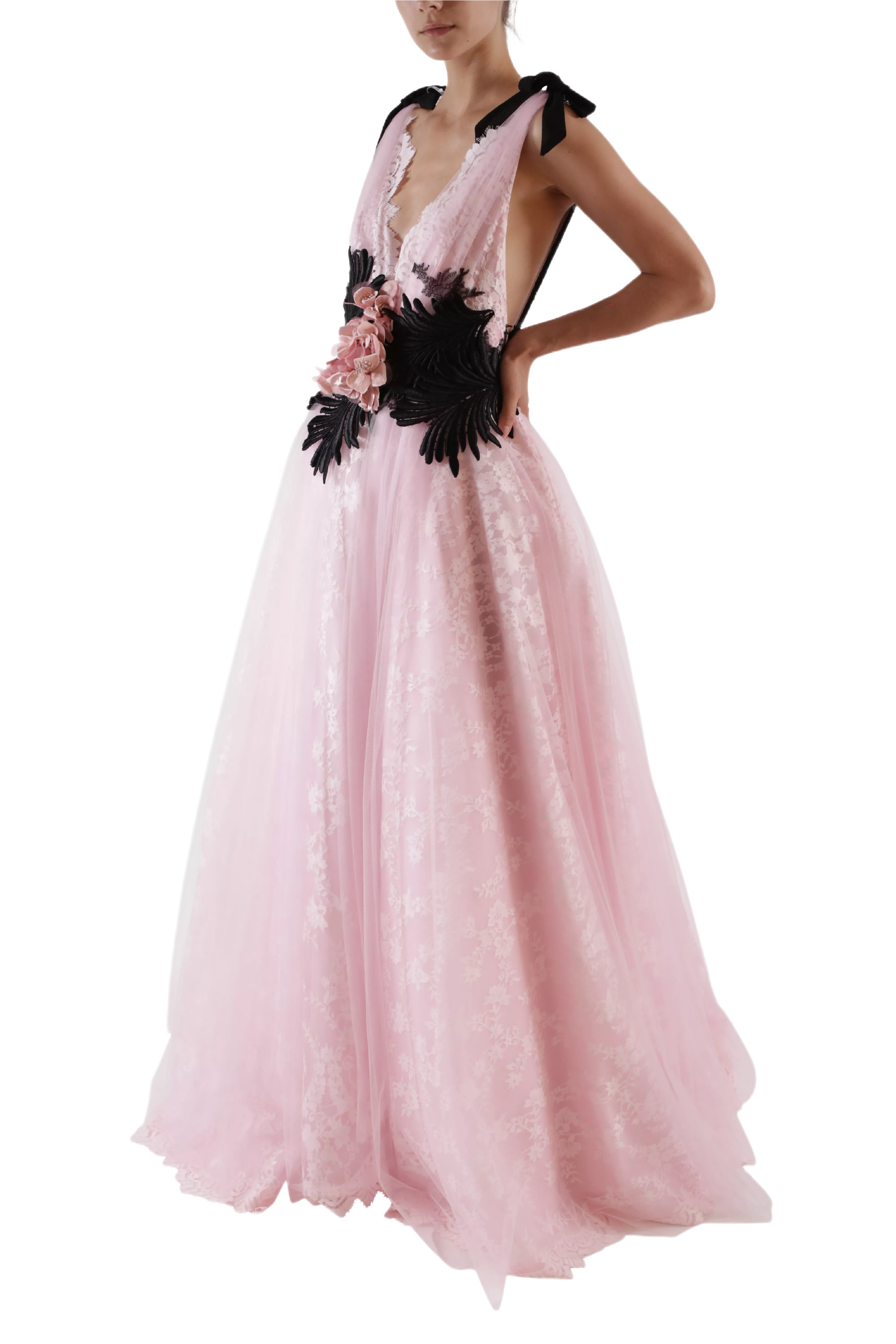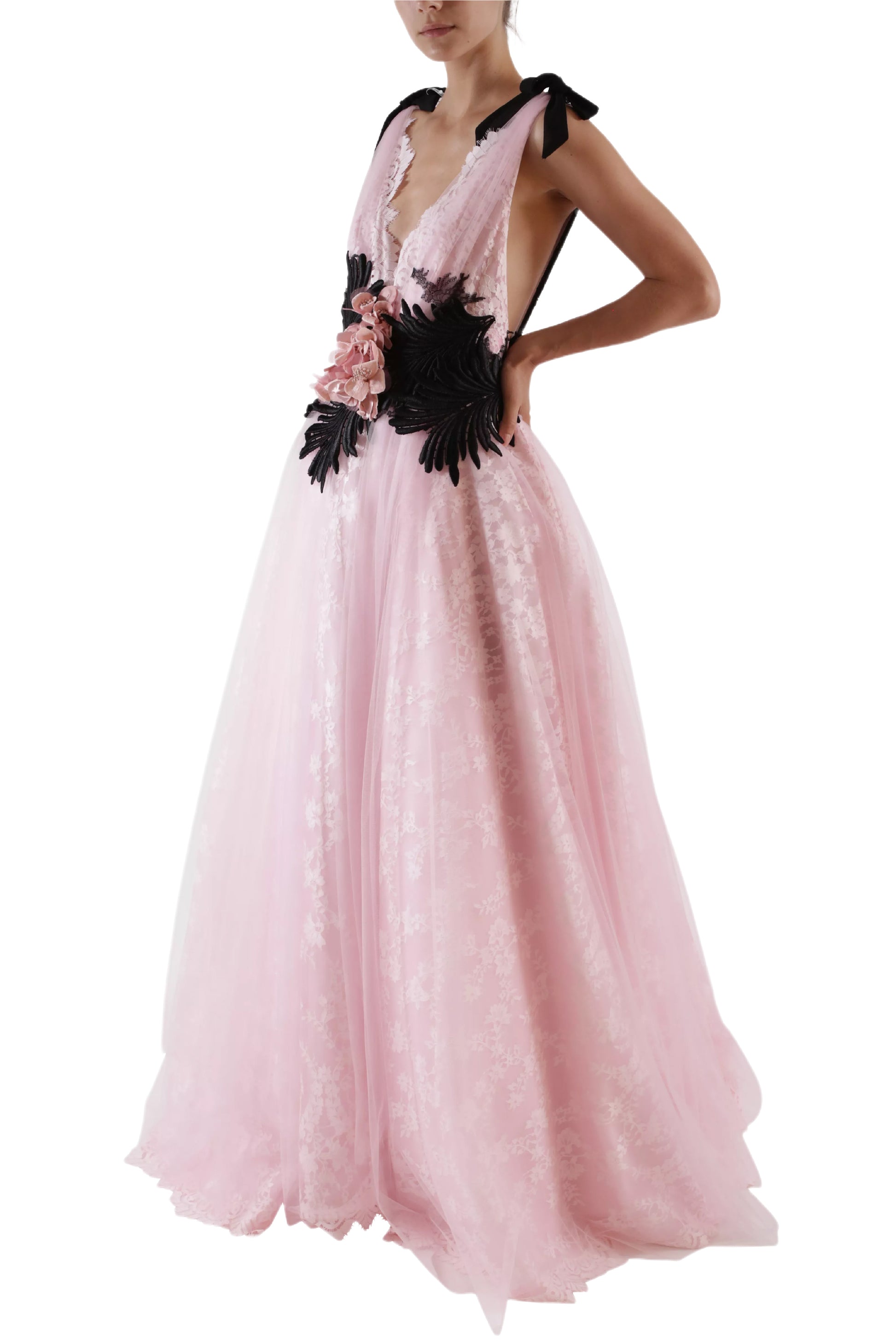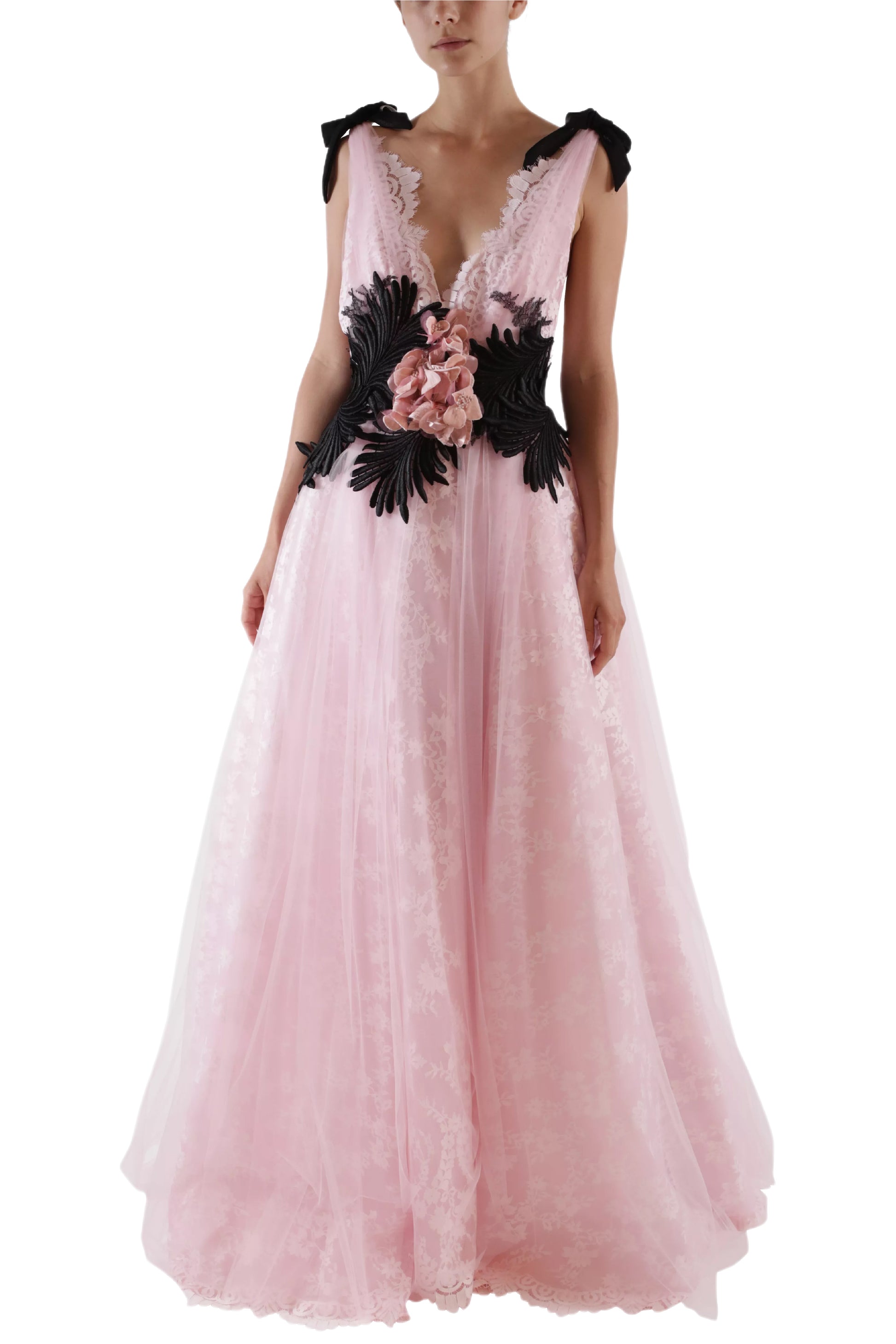 SKU: ALB-V-Neck Lace & Tulle Ball Gown-FR40
