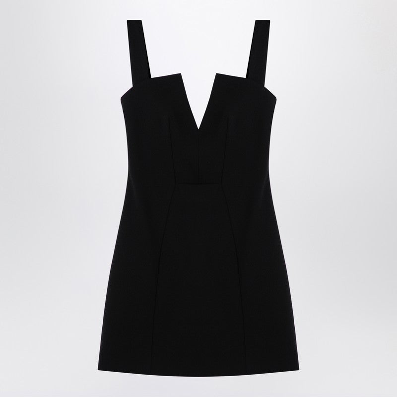 Givenchy'den, şık siyah krep silüetiyle öne çıkan ipek mini elbise. Grafik V yaka ve yan fermuar, zamansız bir tasarıma modern bir yorum getiriyor. Sırt dekoltesi ve dar kesimi, modern bir görünüm yaratıyor. İtalya'da üretilen bu elbise, modayı takip edenler için mükemmel.